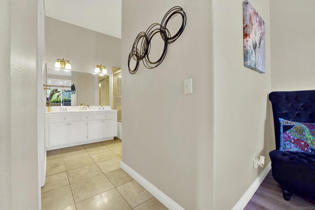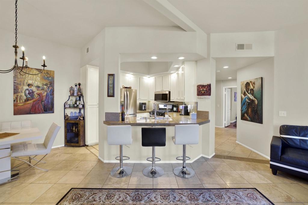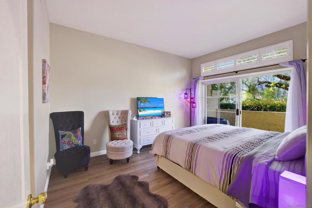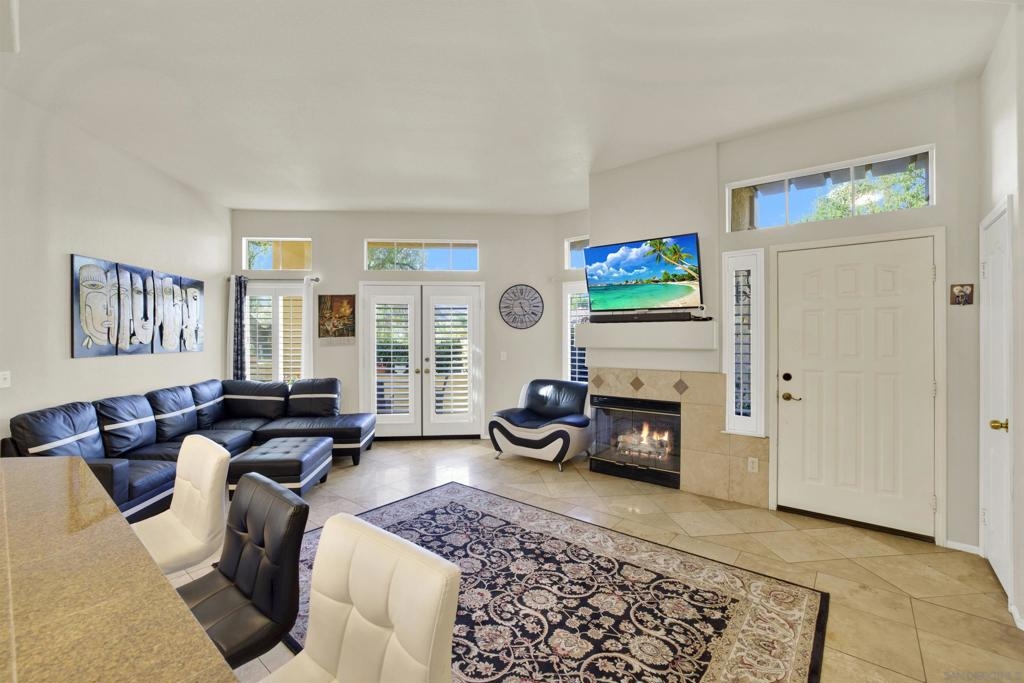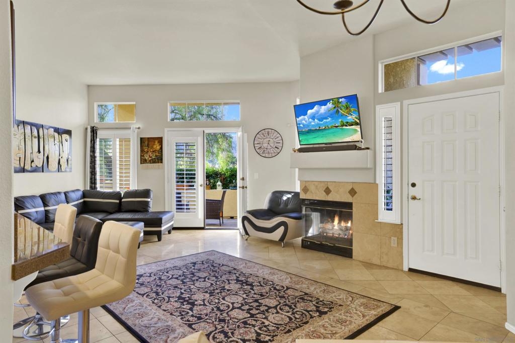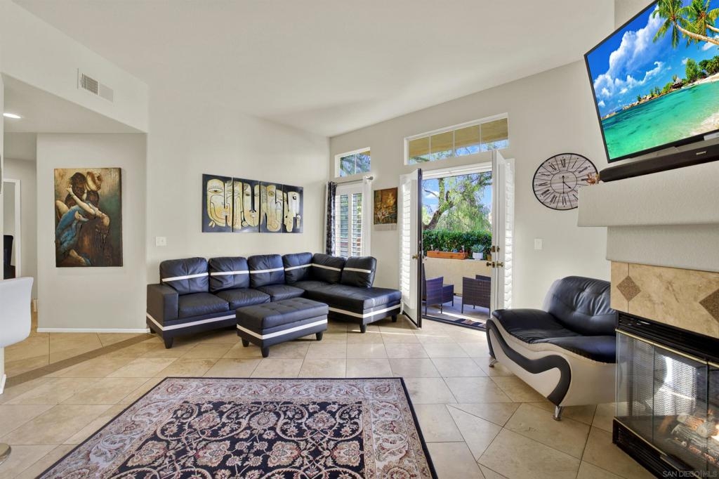 Welcoming, Bright 2BR/2BA corner-unit townhouse in the gated community of Provencal! Located within minutes of shops, eateries, freeway access, and golf courses in the Carmel Mountain Ranch region of Rancho Bernardo Two separate balconies - off the living room and master retreat with MOUNTAIN VIEWS. Beautiful kitchen features stainless steel appliances, granite countertops, a breakfast bar. whole house has water filtration. Vaulted ceiling and gas fireplace in the living room and an abundance of windows with custom plantation shutters. Large master suite with walk-in closet. Travertine tile flooring throughout with nice vinyl in the bedrooms. Full size washer and dryer in the laundry room. Plenty of storage in the attached 2 car garage.