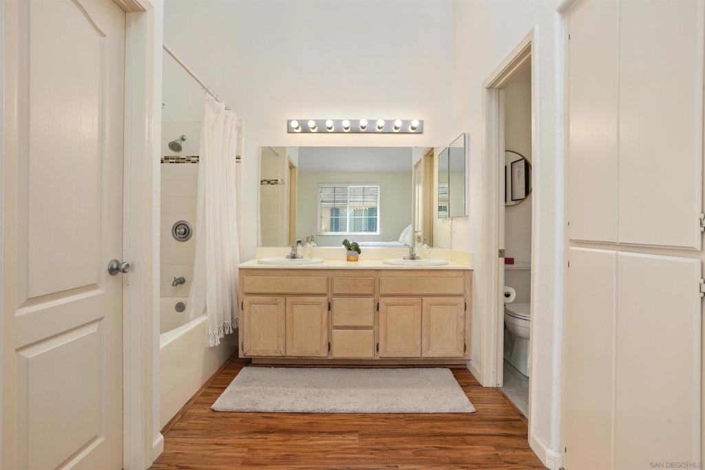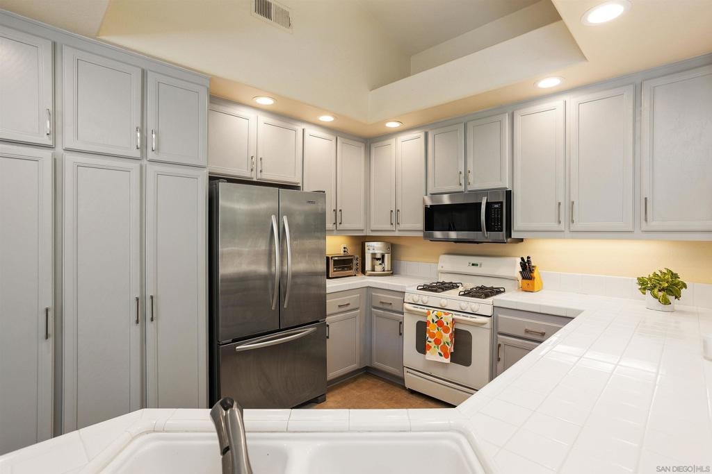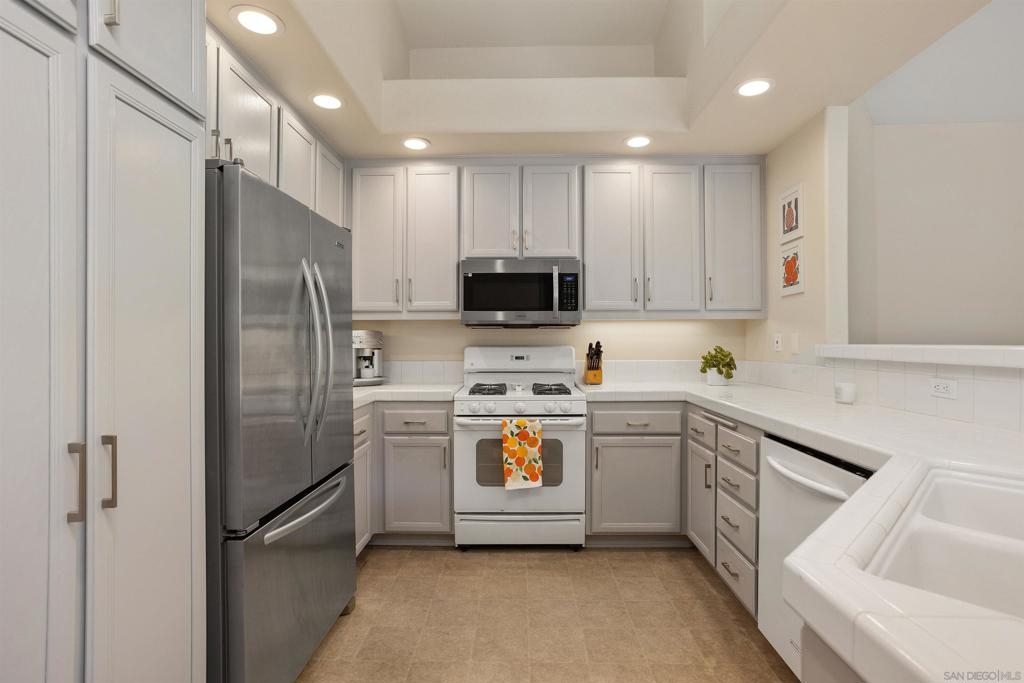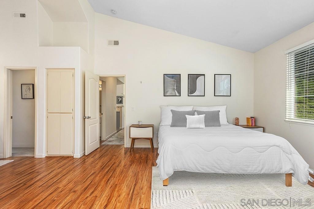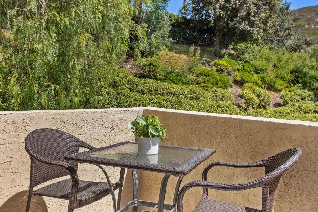 Welcome to the highly desirable community of Provencal! This quiet, corner end-unit home is a gem with an abundance of natural light, vaulted ceilings and picture windows that offer beautiful views of green spaces. The modern design is enhanced by rich wood laminate flooring, a cozy fireplace and a contemporary spacious kitchen, ideal for entertaining your guests. This turn-key home is one of the most sought after floor plans in the complex with a generous primary suite, featuring additional space that can be utilized as a home office, yoga studio or reading nook. The primary suite also includes a private deck, spacious walk-in closet and an en suite bathroom, combining convenience with luxury. Welcome to the coveted community of Provencal! This quiet, end-unit home boasts an abundance of natural light, with vaulted ceilings and an open concept design. This two bedroom + optional room/office, two bathroom home features high-end finishes and rich wood laminate floors that highlight the home’s elegance, while picture windows offer beautiful views of green spaces. The spacious floor plan includes a beautiful open kitchen, a cozy newly tiled fireplace and an outdoor deck perfect for relaxation. The attached garage provides convenience, additional storage and a full size washer/dryer. This turn-key home is one of the most sought after floor plans in the complex with a generous primary suite, featuring an additional room/space that can be utilized as a home office, nursery, yoga studio or reading nook. The primary suite also offers a private deck, spacious walk-in closet and an en suite bathroom, combining convenience with luxury. Ideally situated in Carmel Mountain Ranch, located near trails, parks, a community center, shopping, restaurants, major freeways and the award winning Poway School District. Provencal is a private, gated community that offers amenities such as a sparkling pool, spa, low HOA fees and is also FHA and VA approved. Don't miss this opportunity to make this your dream home!