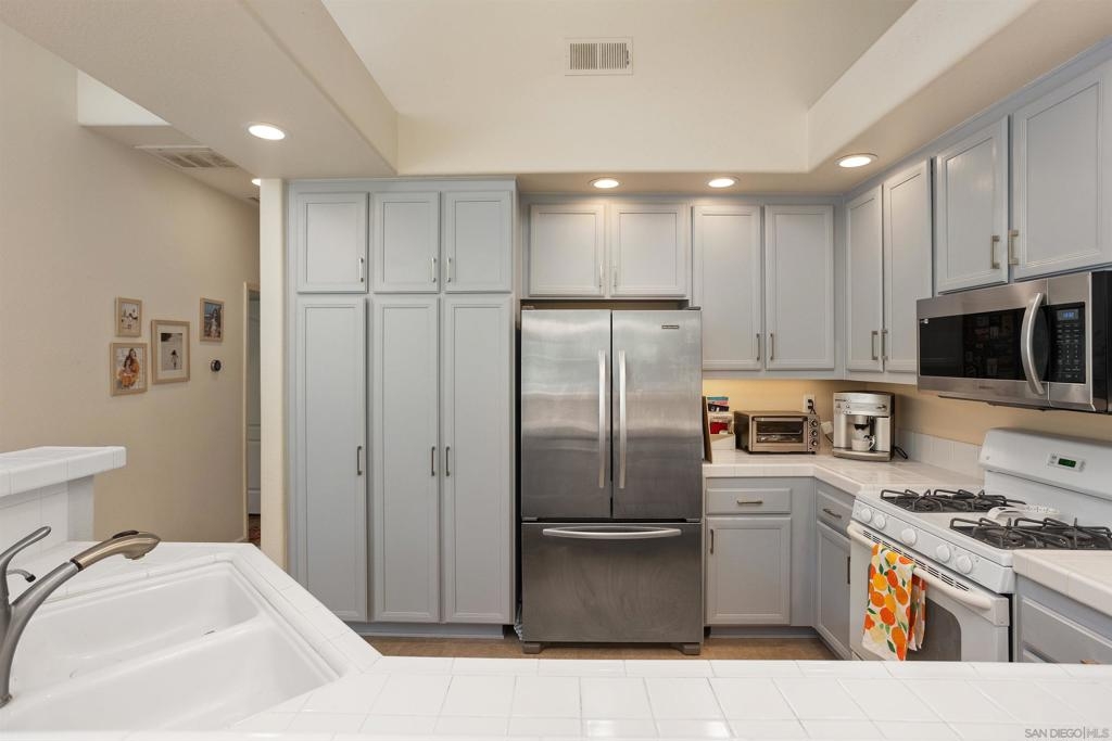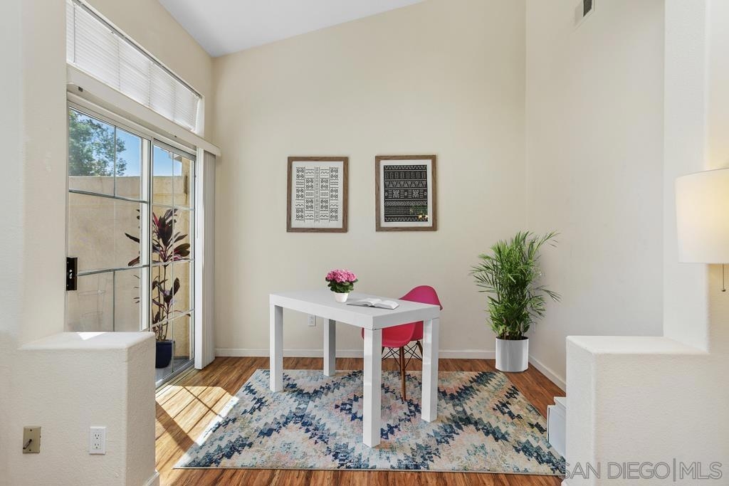 Welcome to the highly desirable community of Provencal! This quiet, corner end-unit home is a gem with an abundance of natural light, vaulted ceilings and picture windows that offer beautiful views of green spaces. The modern design is enhanced by rich wood laminate flooring, a cozy fireplace and a contemporary spacious kitchen, ideal for entertaining your guests. This turn-key home is one of the most sought after floor plans in the complex with a generous primary suite, featuring additional space that can be utilized as a home office, yoga studio or reading nook. The primary suite also includes a private deck, spacious walk-in closet and an en suite bathroom, combining convenience with luxury. Welcome to the coveted community of Provencal! This quiet, end-unit home boasts an abundance of natural light, with vaulted ceilings and an open concept design. This two bedroom + optional room/office, two bathroom home features high-end finishes and rich wood laminate floors that highlight the home’s elegance, while picture windows offer beautiful views of green spaces. The spacious floor plan includes a beautiful open kitchen, a cozy newly tiled fireplace and an outdoor deck perfect for relaxation. The attached garage provides convenience, additional storage and a full size washer/dryer. This turn-key home is one of the most sought after floor plans in the complex with a generous primary suite, featuring an additional room/space that can be utilized as a home office, nursery, yoga studio or reading nook. The primary suite also offers a private deck, spacious walk-in closet and an en suite bathroom, combining convenience with luxury. Ideally situated in Carmel Mountain Ranch, located near trails, parks, a community center, shopping, restaurants, major freeways and the award winning Poway School District. Provencal is a private, gated community that offers amenities such as a sparkling pool, spa, low HOA fees and is also FHA and VA approved. Don't miss this opportunity to make this your dream home!