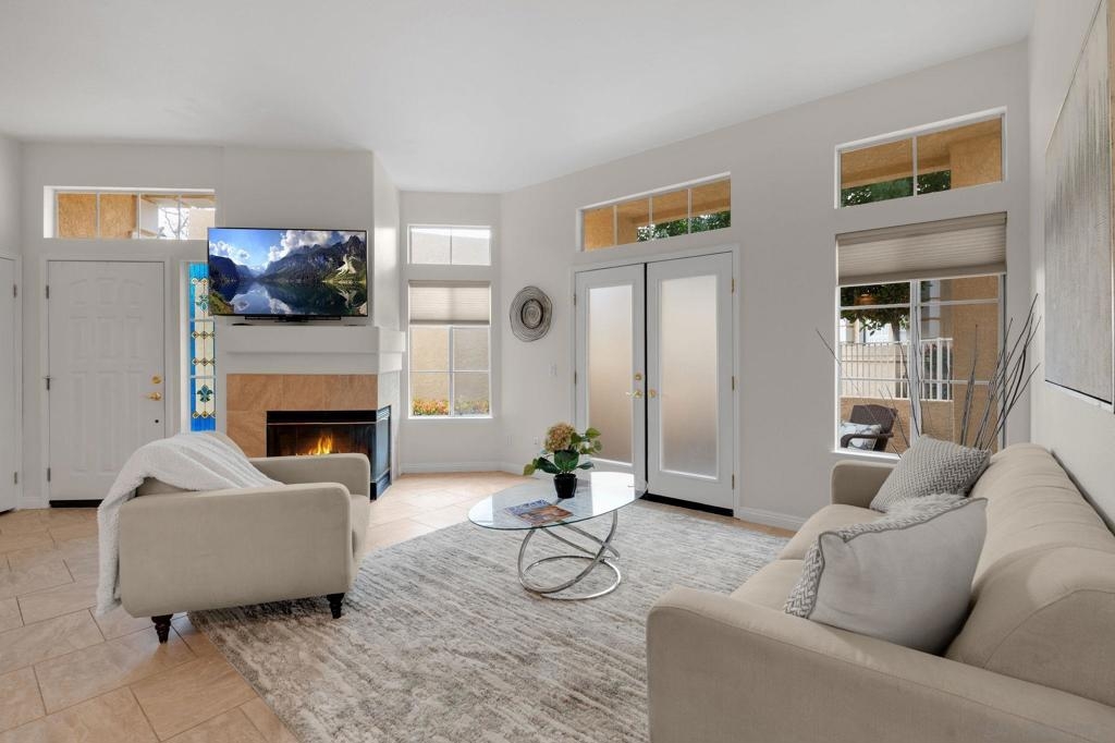 This is your opportunity to own a single level home with a direct-entry, 2 car garage in the highly desirable Carmel Mountain Ranch community of Provencal. Unlike many condos, this one has a gas stove and fireplace along with newer central heat and air, lots of natural light enhanced by the high, cathedral ceilings and custom window treatments. A neighborhood walking park is nearby and another park is in the proposed construction plans offering a dog area, basketball and tennis courts along with a baseball field.