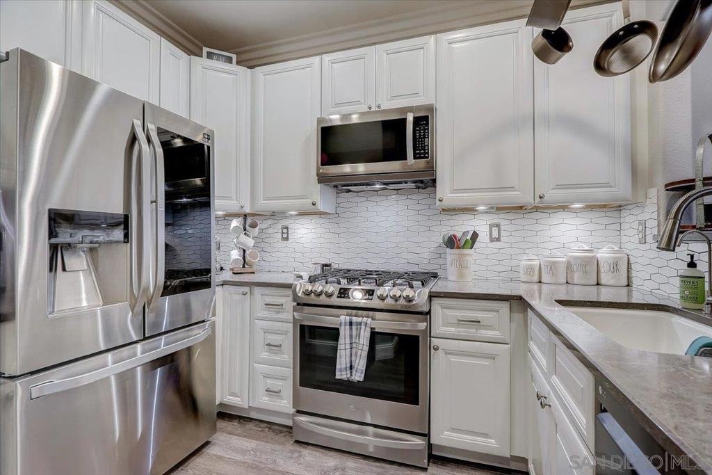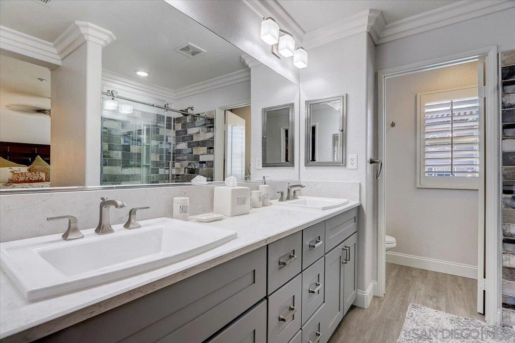 Come live your best life in this gorgeous townhome located in Ravenna at 4S Ranch. As you enter you will gaze upon gorgeous flooring, crown molding, recessed lighting and windows adorned with shutters. The remodeled kitchen features crisp, white cabinetry, stunning countertops accented by a custom backsplash, stainless steel appliances, a 6-burner gas stove and an eat-at counter. The half bathroom on the main level has been upgraded to offer a modern vanity, custom mirror, lighting and fixtures. Upstairs boasts of a large loft - perfect for a home office, exercise equipment or playroom. The laundry room is upstairs for added convenience. The primary bedroom enjoys a large walk-in closet and remodeled bathroom featuring double sinks, custom lighting and a step-in shower with a stunning surround. Ravenna offers its residents a sparkling pool and spa, playground, BBQ and outdoor eating area. Kids will benefit from the award-winning Poway School District too. You are so close to 4S Commons Town Center you can leave the car at home and enjoy all of the shops and restaurants without the hassle of searching for parking. What are you waiting for?! Don’t let this opportunity pass you by! Complex Features: ,,,,, Equipment: Garage Door Opener, Satellite Dish Sewer: Sewer Connected Topography: LL