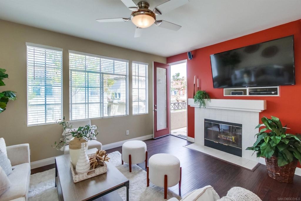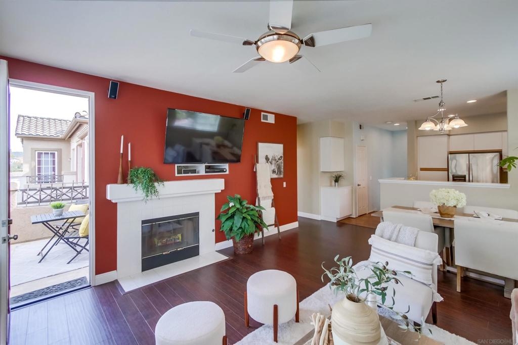 Beautiful townhome in the highly desirable Sabre Terrace community! Step inside to be greeted by newer laminate flooring, high ceilings & a large patio overlooking the community, lush landscaping & pool area. The kitchen boasts plenty of cabinetry, countertop space & newer appliances. The dining area flows seamlessly into your living room where you’ll find a cozy fireplace, built-in entertainment area & access to the balcony. The oversized primary bedroom has an ensuite bathroom & huge walk-in closet with built-in shelving. The unit has one of the best locations within the community, only steps away from the pool & spa! Close to top-ranked Poway Unified Schools, restaurants, shopping, freeway access & so much more! Complex Features: ,, Equipment: Dryer,Garage Door Opener, Range/Oven, Washer Sewer: Sewer Connected Topography: LL