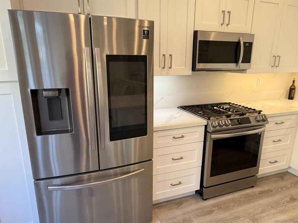 A wow unit in Sabre Terrace! All new carpet and luxury vinyl flooring, newer kitchen with quartz counters, stainless appliances, new HVAC system, recessed lighting, private patio/garden area. Light and bright, Laundry room off of 2 car attached garage with plenty of storage. Quiet section of the complex. Super light and bright unit in Sabre Springs! Remodeled with newer cooks kitchen, carpets,Luxury vinyl wood plank flooring in downstairs area. Well located in complex with great privacy.