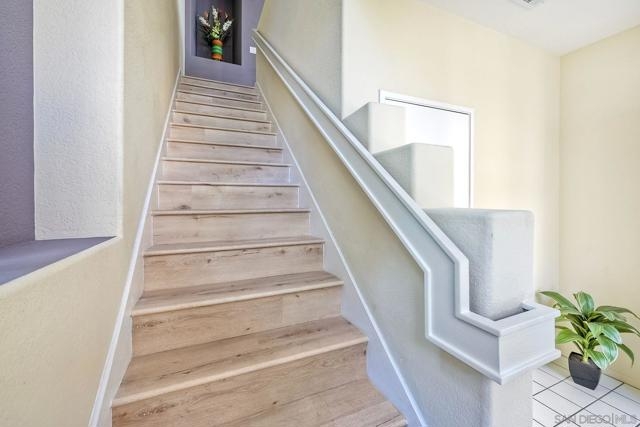 Seller Will Entertain Offer Between $699,900 and $719,900. Great Buy... Turnkey and Shows Like a Model. Don't Miss the Opportunity to Own This Beautiful Townhome in the Sought after San Tropico Community in Sabre Springs. Desirable 2 BR 2 BA Single Story Upstairs Corner Unit Offers Bright, Spacious Open Floor Plan With High Ceiling And Plenty Of Natural Lights. Designer Deco With Cozy Fireplace. A Private Entry With Own Staircase To The Unit. No One Above and Below is Your Own Attached Garage. Upgraded Features Include Brand New Luxury Vinyl Plank Staircase as well as the Entire Flooring in the Living Room and Bedrooms. Freshly Painted Kitchen Cabinets Showcasing a Modern Look with Stainless Steel Refrigerator & Appliances. Option to Have Interior Laundry or in the Garage. Large Outdoor Balcony to Relax and Enjoy. Ideally Located Near Shopping, Dining, Parks and Entertainment. Easy Access to Freeways. Highly Acclaimed Poway School District. The Well-Maintained Community Offers Fantastic Amenities, Including a Sparkling Pool And Spa. A GEM! Hurry To Make Your Best Offer!
