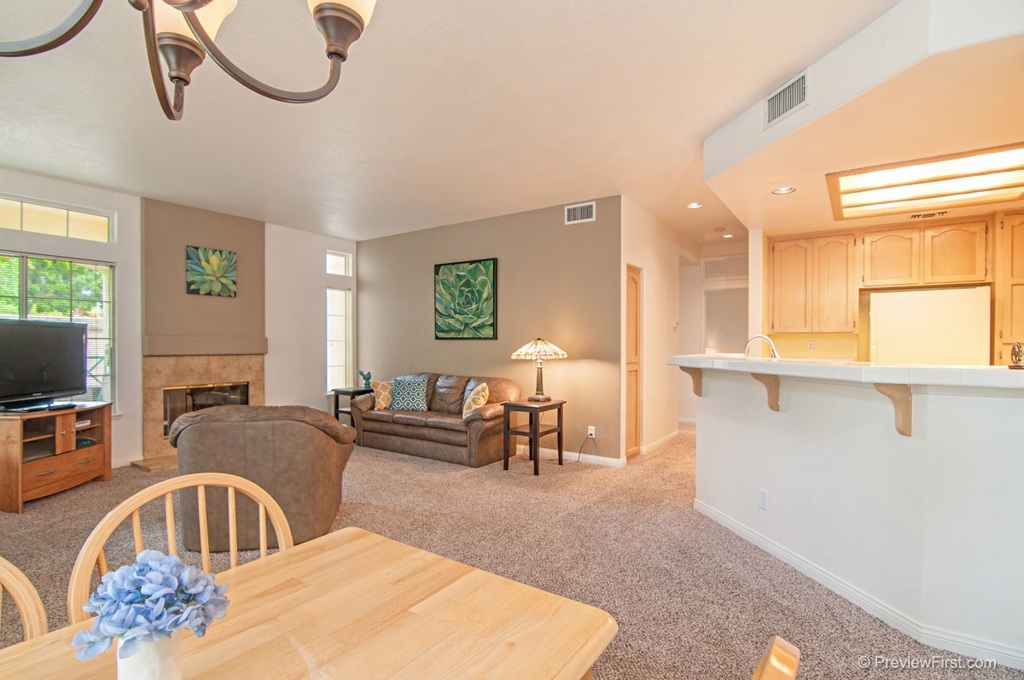 Secluded, private location end unit. Inviting, move in ready single level condo, feels like a home. Open spacious floor plan with a romantic fireplace, good size rooms, fresh paint, mostly new appliances & new carpet. Double sinks in master bath, large master walk in closet, indoor laundry and a charming patio. Attached 1 car garage plus extra parking space. There is ample parking for your guests, community pool/spa, award winning Poway Unified School District, close to shopping and freeway access. Neighborhoods: San Tropico Complex Features: , Equipment: Dryer, Range/Oven, Washer Other Fees: 0 Sewer: Sewer Connected Topography: LL