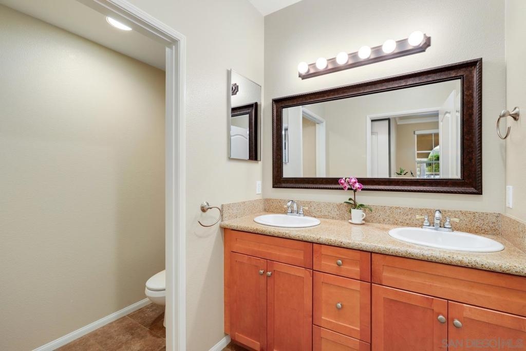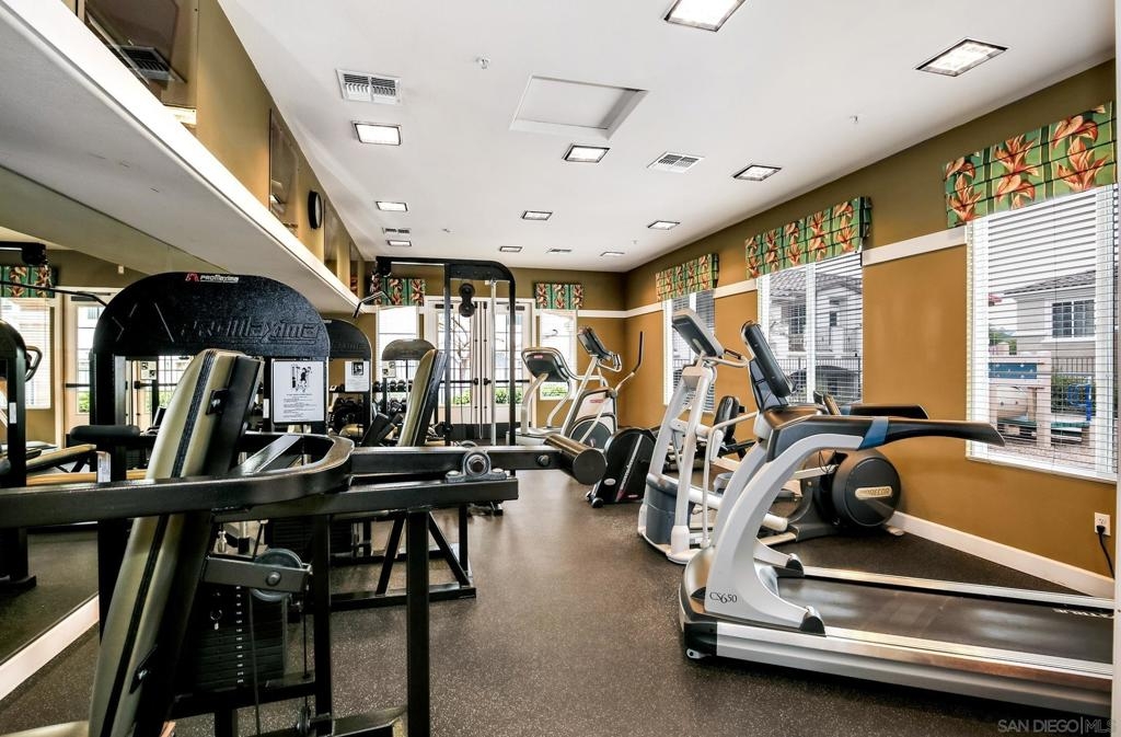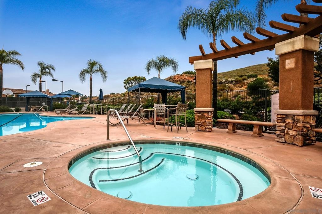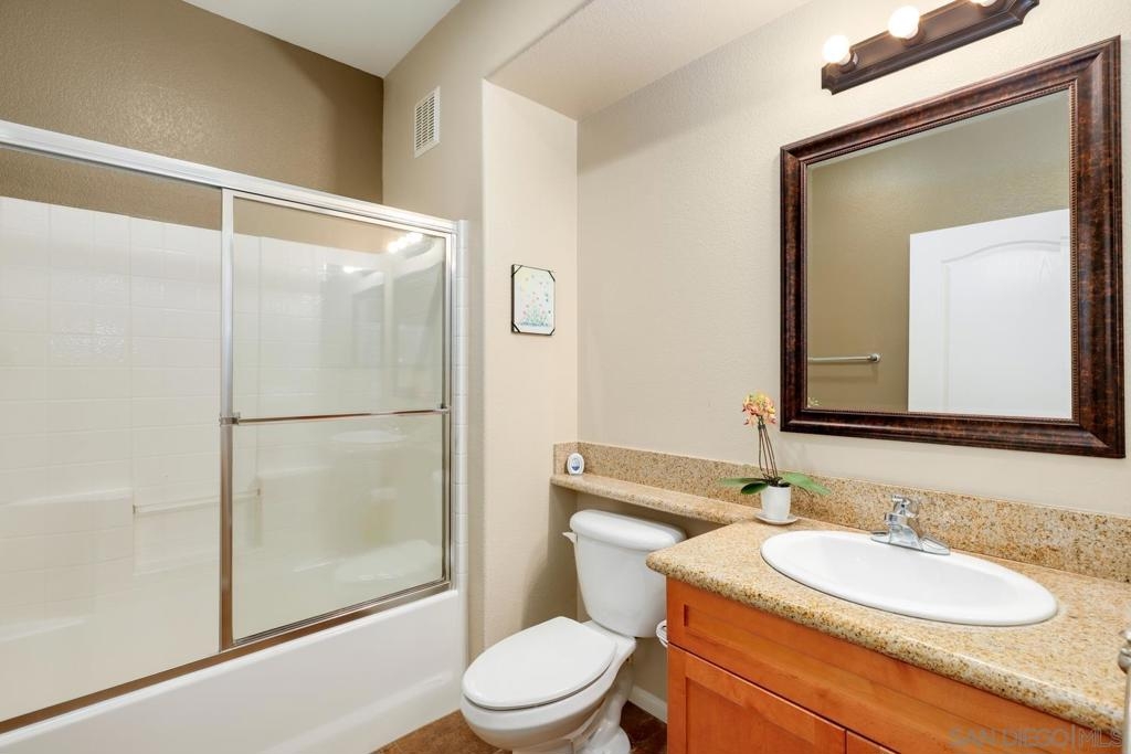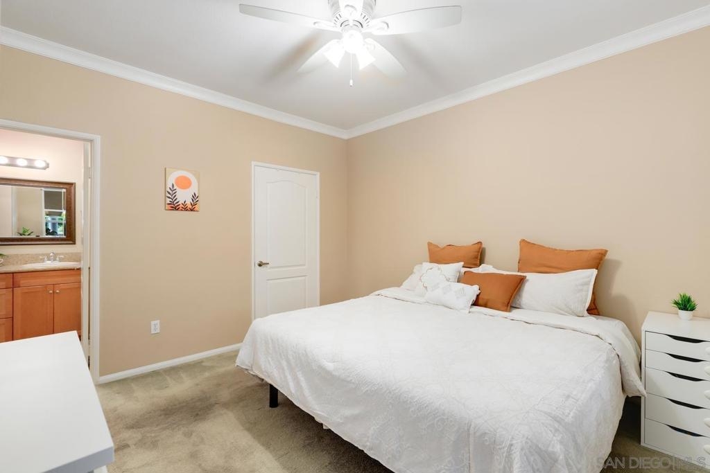Spacious Ground-Level Condo in Desirable Sabre Springs – Poway School District! Enjoy a well-designed floorplan featuring an open living room with a cozy fireplace that flows seamlessly to a private patio—perfect for indoor-outdoor living. The kitchen offers stainless steel appliances, granite countertops, warm honey-hued cabinetry, and breakfast counter seating, creating a functional and inviting space for everyday living and entertaining. Beautiful wood flooring runs throughout the entry, living room, kitchen, and hallway, complemented by crown molding in both the living room and spacious primary bedroom. Additional highlights include central A/C, a dedicated laundry room, and an attached 2-car garage. Located in the sought-after Savannah Terrace community, residents enjoy access to resort-style amenities including a pool, spa, sauna, steam room, gym, tennis and racquetball courts, a media room, library, barbecue areas, and a party room with kitchen available to rent. All this within the highly rated Poway Unified School District, with shopping, dining, parks, and freeway access nearby in the Sabre Springs neighborhood. This is San Diego living at its best!