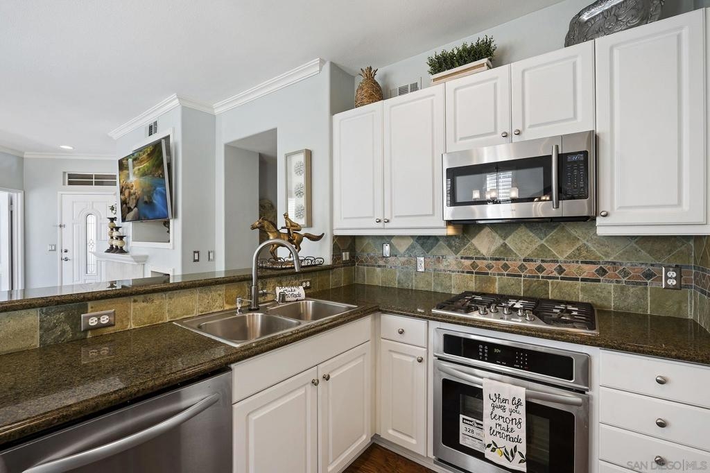 Stunning 3 bed, 2 bath townhome, rare find, no stairs, beautifully equipped. Recently update SS appliance, granite counters, full height backsplash, Laminate flooring, tile in Bath and Laundry room. Attached oversized,; 2 car garage w/ storage: Upgraded garage door opener. Modern, open floor plan, crown molding, custom paint, large covered patio with closet. spacious laundry room with additional closet, cabinets and laundry hanging area. You will enjoy living in the prestigious Savanna Terrace with first class amenities including, beautiful pool, cabanas, Jacuzzi, Tennis court, indoor racquetball court, His and Her; Locker rooms, equipped w/ showers, sauna, and Steam rooms. tot lot, large BBQ area for family and friends. The Sabre Springs/Carmel Ranch is community that offers a first class life style, and will appeal to all ages. An upscale North County Community with a Niche rating at an A+. The public schools are served excellent, Poway Unified SD. This complex attaches Morning Creek Elementary School. SBS-CMR in known as one of the best communities of San Diego County, and offers plenty of outdoor space, with quaint coffee shops, parks, recreation, bike paths, and plenty of nearby shopping centers. Freeway access is a breeze for an stress-free commute. Complex Features: ,,,,,,,,,, Equipment: Dryer,Garage Door Opener, Washer Sewer: Sewer Connected Topography: LL