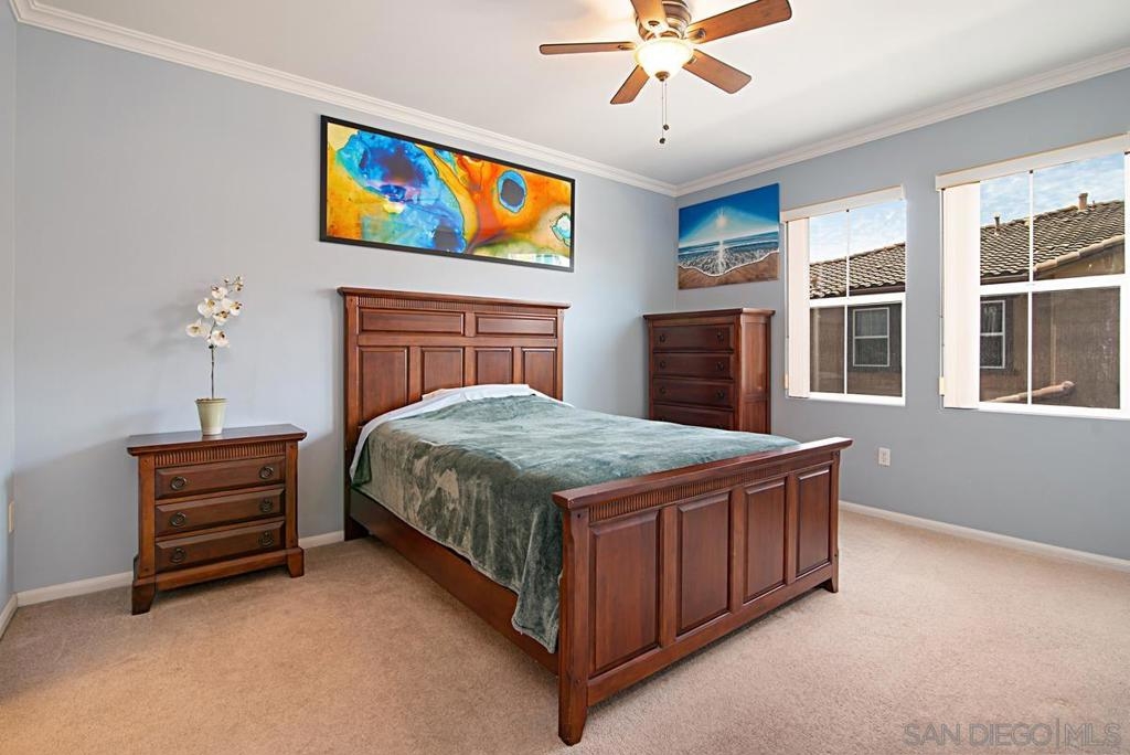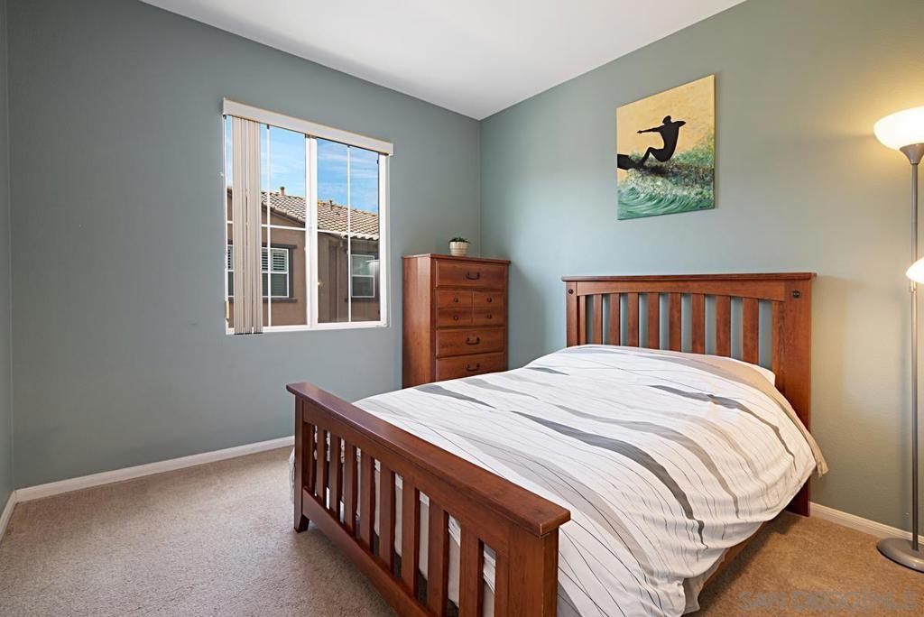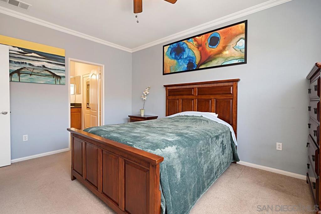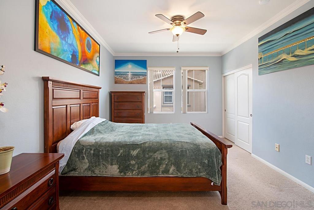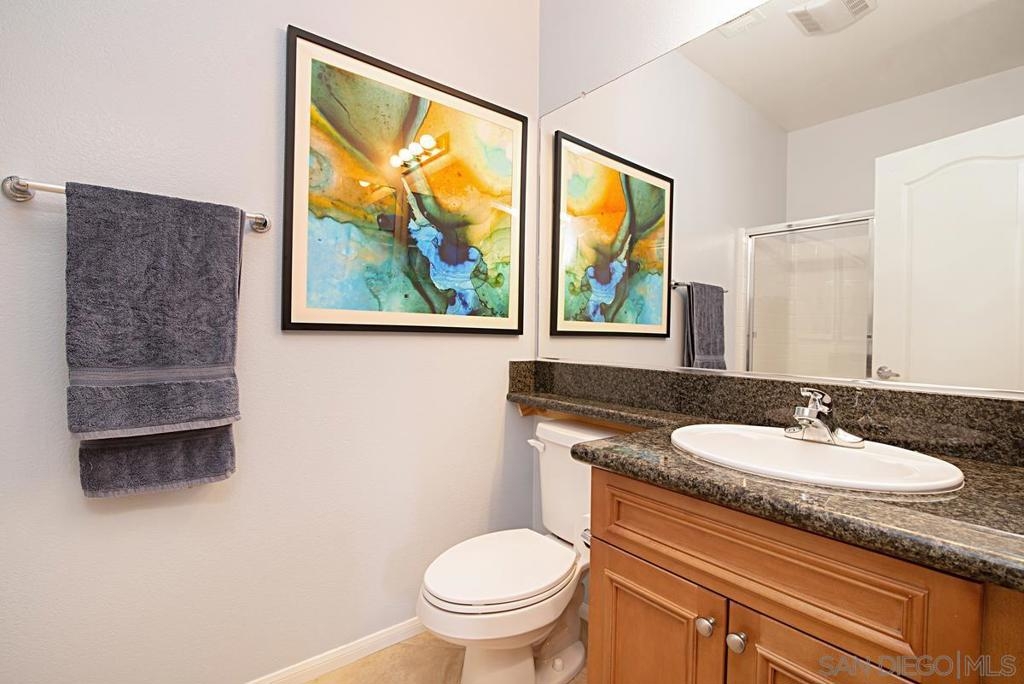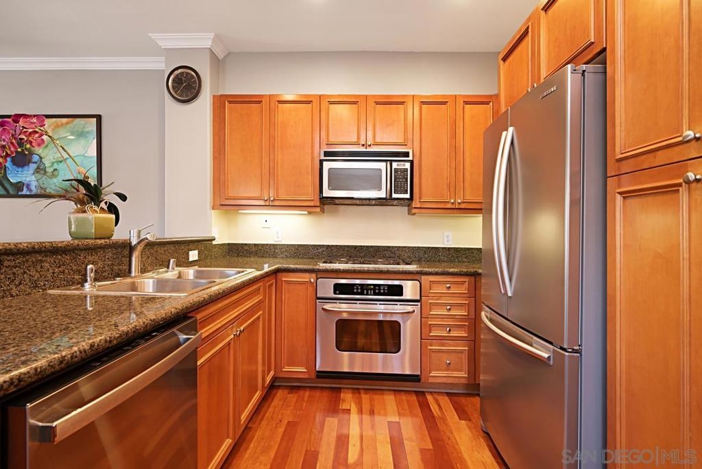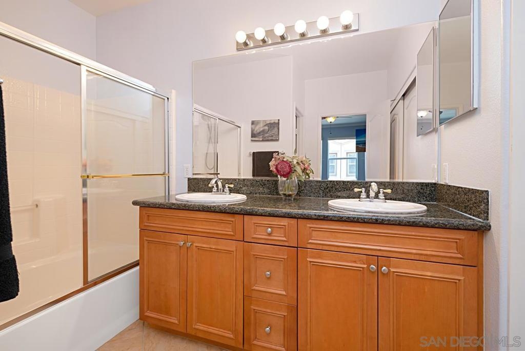 One of the best locations in Savannah Terrace. Two bedroom, two bath, in-unit washer and dryer with stainless steel appliances. Wood floors with a lot of storage and spacious closets. Large master bathroom with his and her sinks. Beautiful tree provides privacy on the balcony. The coveted Elisa Lane is the ideal location: quiet, situated between the club house amenities and neighborhood. A short 200 yards to Sabre Springs neighborhood park and ball fields, Van Dam Peak trail head for biking or hiking with ocean views, rare paved walking path along mountainside, across from Sabre Springs Market Place with Nutmeg Bakery. Unique amenities for a reasonable HOA: in the club house you get racquet ball court, gym, steam room, sauna, office, two large living rooms and outside you'll find basketball and tennis courts, spacious pool and hot tub, children's playground and a large grilling area with outdoor fireplace. There's even a guest suite you can rent so visitors don't cramp your style! With a short 6 minute drive, you're in PQ, Carmel Mountain, Scripps Ranch or Poway.