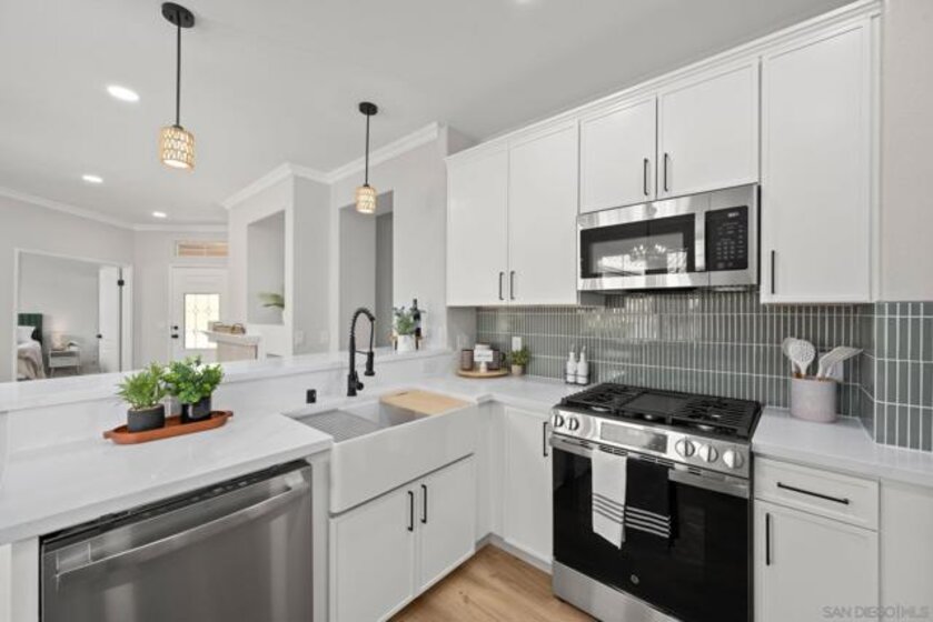 Welcome to your next home! This beautifully remodeled End Unit 3-bedroom, 2-bath offers the perfect blend of comfort, convenience, and style. Step inside to a bright and open floor plan featuring a spacious living area, ideal for entertaining or relaxing after a long day. The modern kitchen boasts stainless steel appliances, ample cabinet space, and a breakfast bar that flows seamlessly into the dining area. The primary suite is a true retreat with a massive walk-in closet and a private en-suite bathroom. Two additional bedrooms provide flexibility for family, guests, or a home office. Enjoy the ease of an attached 2-car garage, offering both secure parking and extra storage along with a laundry area with excellent storage. Enjoy the incredible view and venture just steps from your front door to amazing trails and walking paths.