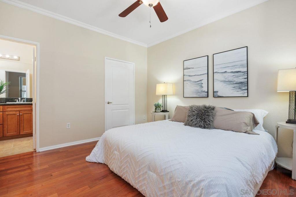 Motivated Seller seeking fast close. Bring your best offer for this beautiful ground level unit in Sabre Springs and the Poway School District. Spacious 2 bedroom, 2 bathroom floorplan features high ceilings, dual pane windows, and stunning hardwood floors. Well appointed kitchen with granite countertops and stainless steel appliances. Large primary bedroom with huge walk in closet. The covered patio is a great place to relax outside. Walk through the laundry room into your 2 car garage. Located in the Savannah Terrace community, the property has access to beautiful amenities including a pool, spa, playground, gym, clubhouse and tennis courts. Community walking trails and a park are just steps from your front door.