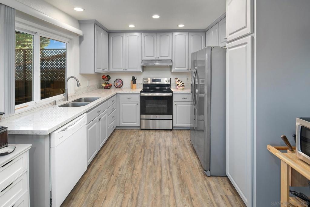 Resort-like living in the highly desired 55+ Seven Oaks community. Tucked away at the end of a quiet cul-de-sac, you’ll find this beautiful and well-maintained 2 bed, 2 bath single story hacienda end unit. Featuring numerous upgrades including luxury vinyl plank flooring in the kitchen and dining area, a fully updated kitchen with resurfaced soft-close cabinets and quartz countertops, refinished bathrooms with matching quartz countertops and soft-close cabinets, dual pane windows and sliders, and two patios including one enclosed space and one covered space adjacent to the kitchen and dining area. With a vaulted ceiling in the living area, this home feels spacious and brings in plenty of natural light. This property also includes a carport with bonus storage. The Seven Oaks community center has everything you need including a pool, tennis and pickleball courts, woodworking room, ceramics studio, sewing center, library, auditorium, shuffleboard courts, and weekly group activities and socials. Close to restaurants, shopping, walking trails, golf, and so much more.