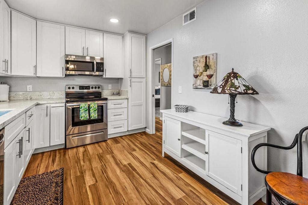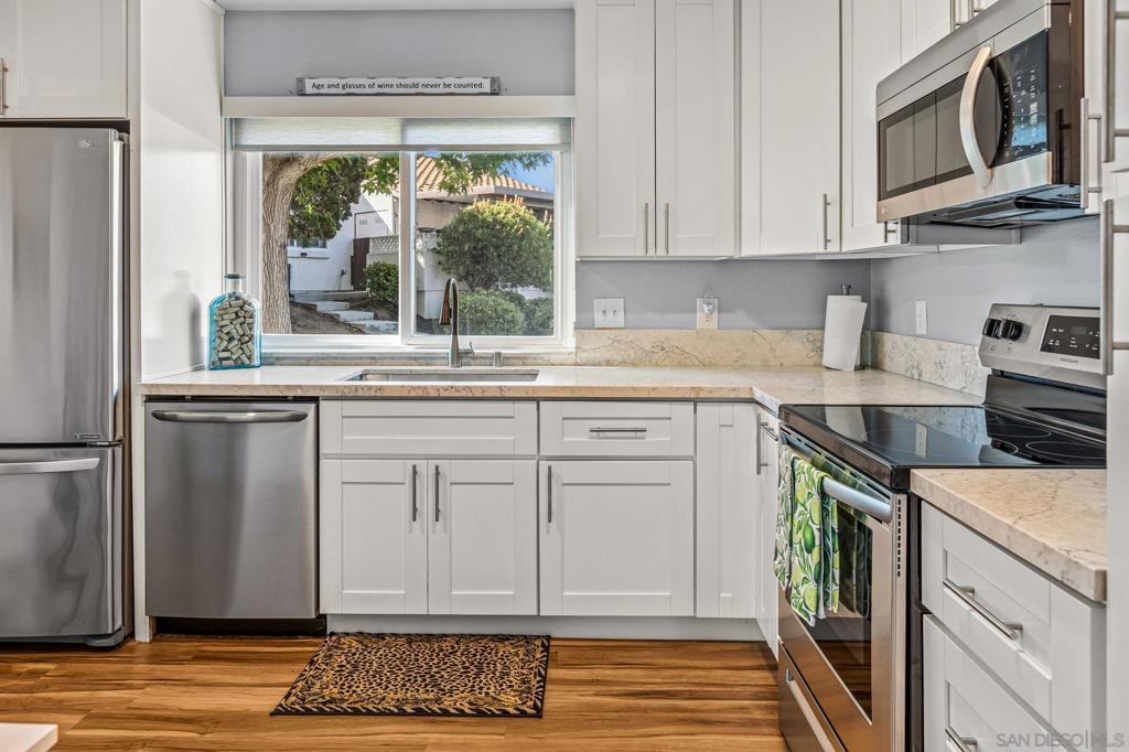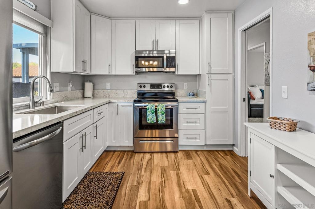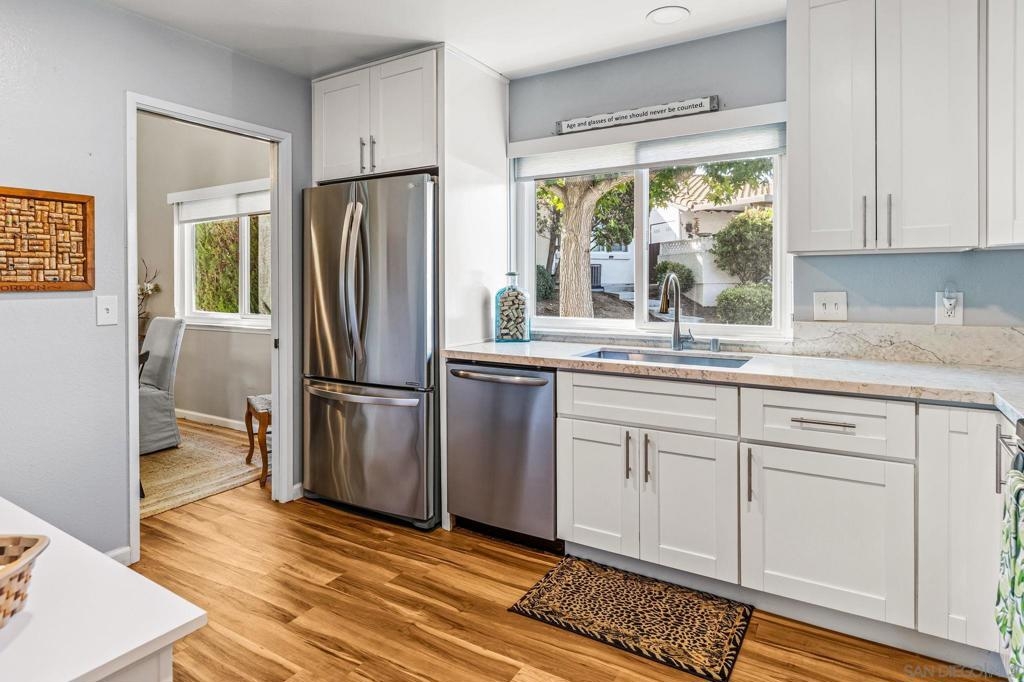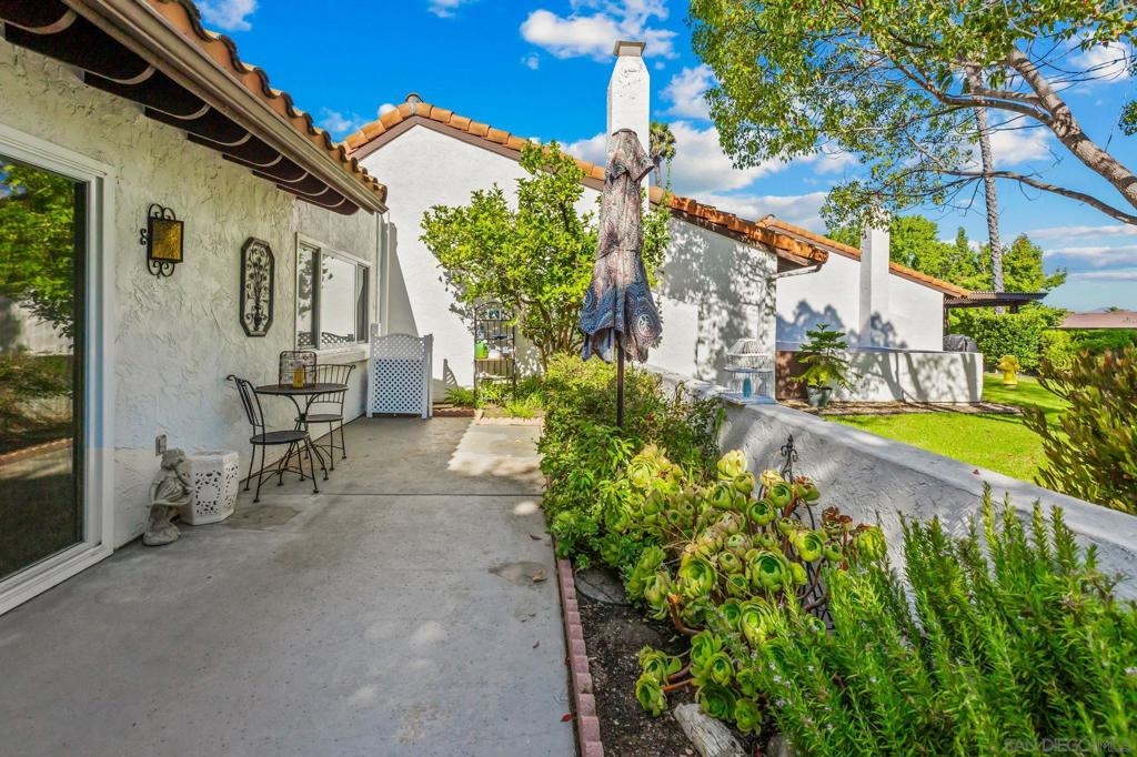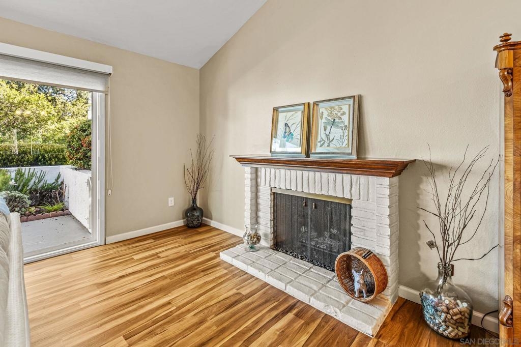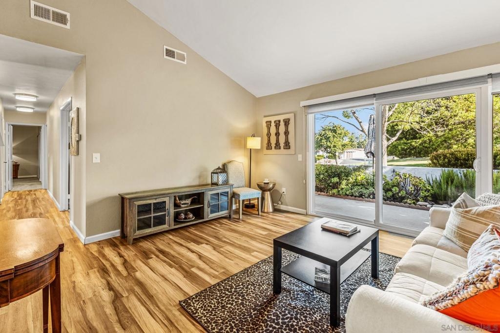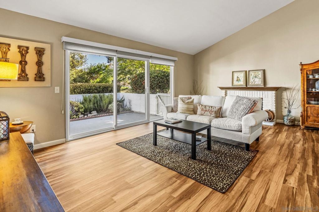 Gorgeous Single-Level End Unit in 55+ Seven Oaks! Updated 2 bed + DEN / 2 bath home in one of the best locations in the community! This quiet cul-de-sac home feels private and serene with two large patios overlooking lush greenery. Spacious open floor plan with vaulted ceilings, abundant natural light, and cozy fireplace. The remodeled kitchen features white shaker cabinets, quartz counters, and stainless-steel appliances. Dual-pane windows, custom shades, HVAC, and outside storage closet. Enjoy the resort-style amenities Seven Oaks is known for: pool, clubhouse, library, fitness center, pickleball, and more. Move-in ready and waiting for you!