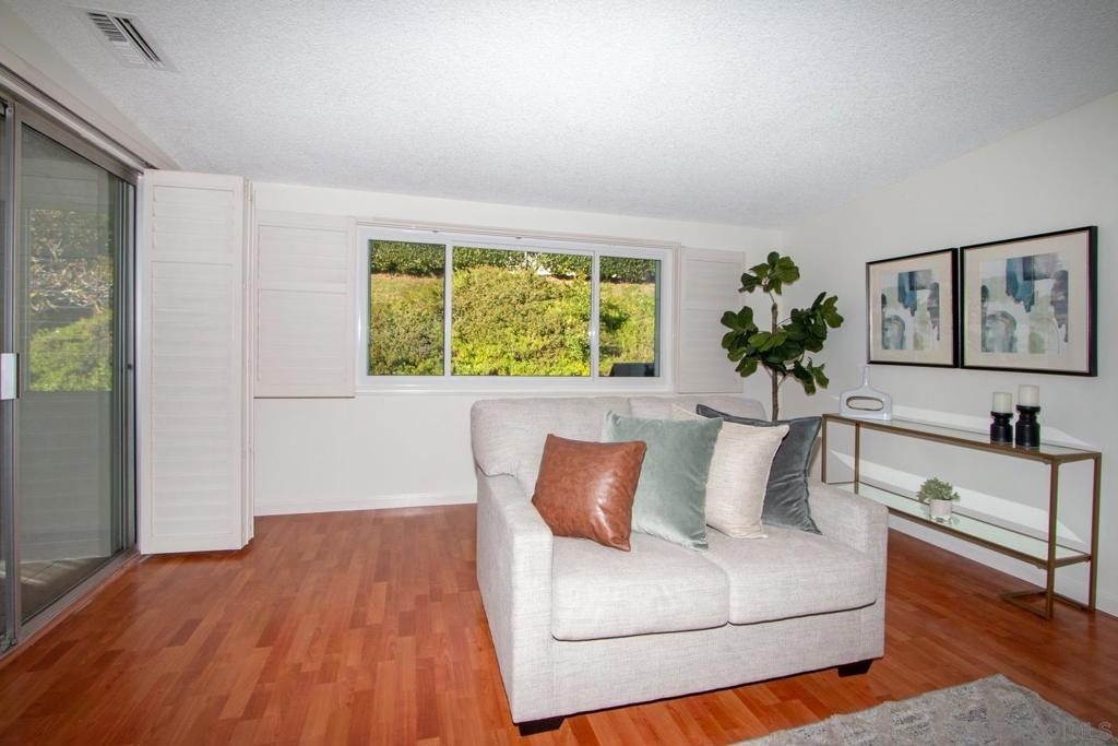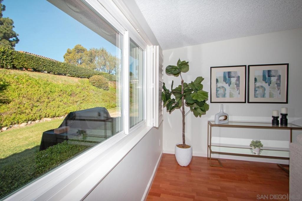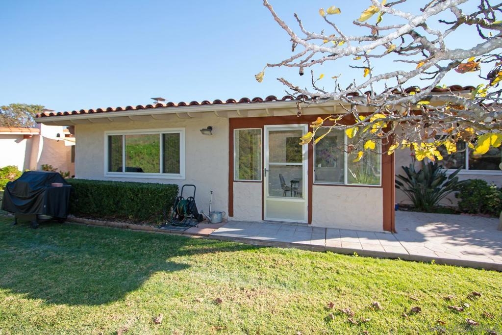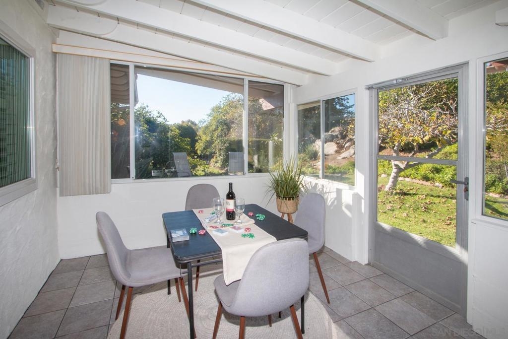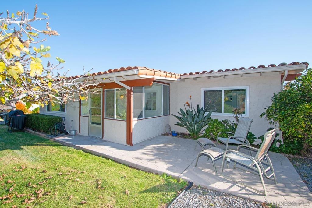 This delightful 2-bedroom, 2-bathroom condo is a bright, freshly painted home of 1358 square feet, but with the enclosed sun porch, it offers 1500+ square feet of livable space! Plantation shutters and dual paned windows throughout account for the sunny, bright, open aspect inside, and one scenic view after another without. Snug patios front and back, plus surrounding manicured greenbelt, continue that “joy to be home” experience. Inside, spacious open living and dining rooms are ideal for entertaining and livability. Spacious kitchen, bathrooms and laundry room make this home, with numerous closets, adjoining peaceful bedroom retreats. Light and airy, and the green grass grows all around. Welcome home. Membership in this 7 Oaks community includes an outstanding club house, pool, tennis, ever-popular Pickle Ball, and numerous clubs, all surrounded by nearby Golf courses you can join, and lots of walking spaces. The walkability of this community is a great venue for making friends and entertaining guests. Nearby amenities include the Bernardo Winery with their country shops, Fine dining, coffee shop, History Museum, Art gallery, and weekly entertainment. Less than a mile away is the PGA rated RB Inn with 18 holes, World Class Spa, multiple dining rooms and bar, and delightful Country-Inn setting. Enjoy hiking & bike riding around nearby Lake Hodges, enjoy boating fishing, and the Westfield Mall for shopping and Restaurants. Centrally located, 7 Oaks radiates out to nearby amenities like these, easy access to SD County. Homeowner passed peacefully in his sleep. Besides designated, lighted carport, and driveway parking, this condominimum includes a lockable Golf cart garage next to the carport. For those who do not have a golf cart, this makes a splendid workshop or storage room.