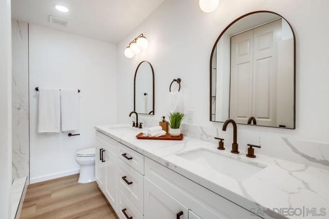 Discover effortless elegance and vibrant 55+ living in the highly sought-after Seven Oaks community within sunny Rancho Bernardo. This meticulously renovated single-story home offers the perfect blend of modern comfort and low-maintenance luxury. 2 generous bedrooms and 2 full baths, Brand-new shaker-style cabinets in crisp white, paired with sleek quartz countertops surrounded by natural light – perfect for casual breakfasts or hosting friends. Fresh flooring, updated fixtures, and contemporary finishes from top to toe, ensuring move-in-ready bliss without the hassle. Enjoy California's year-round sunshine on your private patio, ideal for al fresco dining or tending to a small garden oasis. Designed for easy living with open-concept flow and abundant natural light, ideal for retirees or part time living seeking a welcoming neighborhood with golf cart-friendly streets and garage parking for zipping to nearby amenities, friends, and fun! Life in Seven Oaks is a dream for active adults – stroll or golf-cart your way to the community clubhouse, sparkling pool, fitness center, pickleball courts, and social events that keep the calendar full. Surrounded by Rancho Bernardo's rolling hills, you're minutes from top-rated dining, shopping at The Village, and world-class golf at courses like The Course at Rancho Bernardo Inn. Plus, easy access to I-15 and nearby medical centers makes it all convenient shopping and amazing eateries.