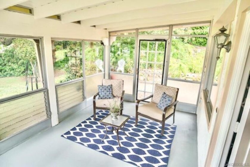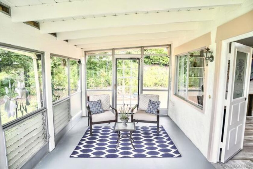 BACK ON THE MARKET, BUYER COULDN'T PERFORM and new price! This is your opportunity to own this charming beautifully updated single-story 2 bedrooms and 2 full baths home, with serene parklike greenbelt views. Step into the inviting enclosed patio area leading to the main entrance with double doors. This home offers an open concept layout, illuminated by skylights and recessed lighting creating a bright and airy ambiance throughout. The fireplace combined with the newer wooden-like flooring in the living spaces complements the modern aesthetic. This home features large bedrooms with a fully renovated en-suite and hallway bathrooms for ultimate comfort and luxury. The renovated kitchen boasts tile flooring, a barn sink, cabinets with soft-close doors and drawers, lower cabinets featuring drawers for easy access, leather-top granite countertops, and a stunning turquoise backsplash. A convenient pantry adds functionality to the space. Expanding the living area, an enclosed bonus room offers versatility, perfect for a home office, exercise area, or cozy den retreat with access to the open back patio area, ideal for outdoor relaxation and entertaining. The comfort of this home is complemented by the private outdoor laundry room. Nestled within the Seven Oaks community, residents enjoy access to a wealth of amenities and social opportunities. From community events to recreational activities at the Seven Oaks Community Center, including a pool, spa, fitness center, library, pickleball courts, walking paths and more. Close to Bernardo Winery and golf courses. This home features large bedrooms with a fully renovated en-suite and hallway bathrooms for ultimate comfort and luxury. The renovated kitchen boasts tile flooring, a barn sink, cabinets with soft-close doors and drawers, lower cabinets featuring drawers for easy access, leather-top granite countertops, and a stunning turquoise backsplash. A convenient pantry adds functionality to the space. Expanding the living area, an enclosed bonus room offers versatility, perfect for a home office, exercise area, or cozy den retreat with access to the open back patio area, ideal for outdoor relaxation and entertaining. The comfort of this home is complemented by the private outdoor laundry room. Nestled within the Seven Oaks community, residents enjoy access to multiple amenities and social opportunities. From community events to recreational activities at the Seven Oaks Community Center, including a pool, spa, library, pickleball courts, and walking paths, there's something for everyone to enjoy in this vibrant 55+ community.