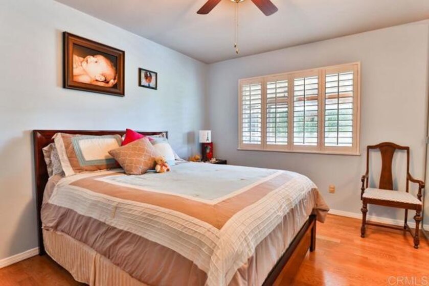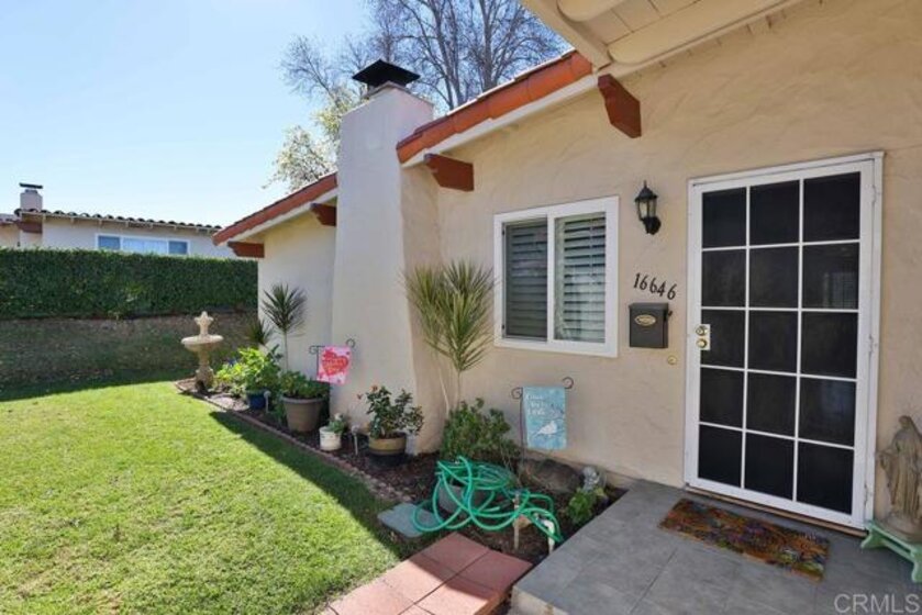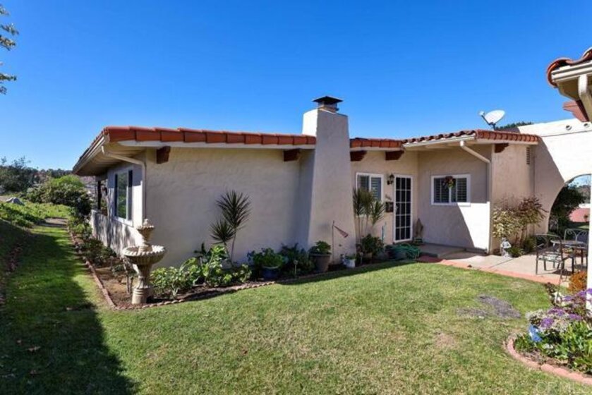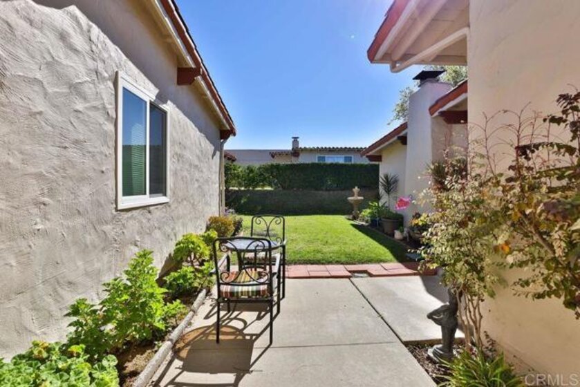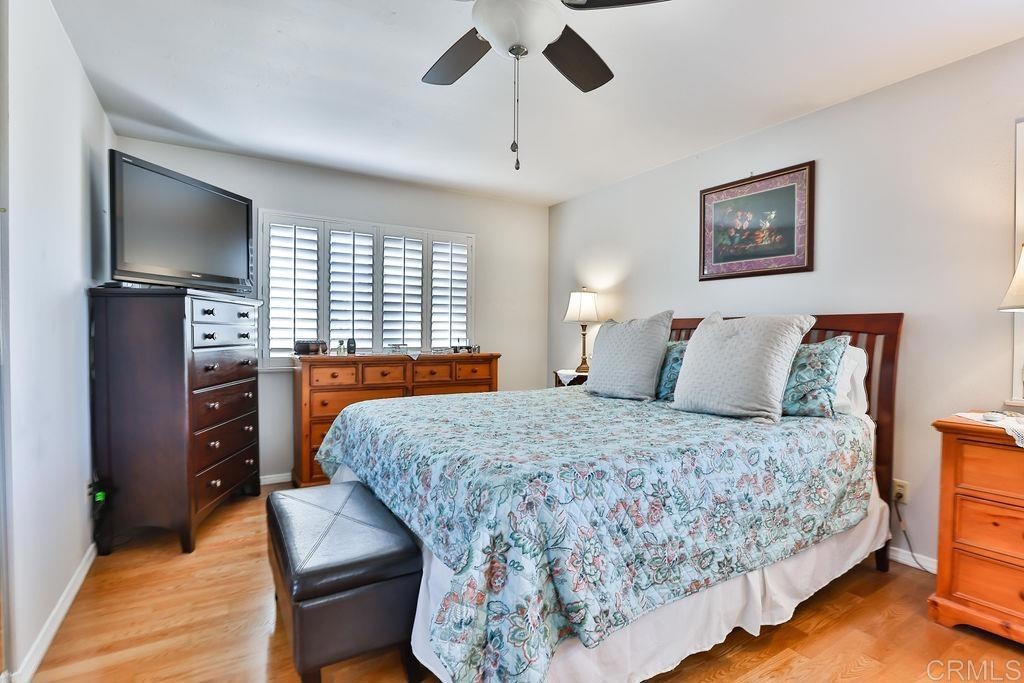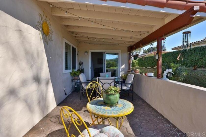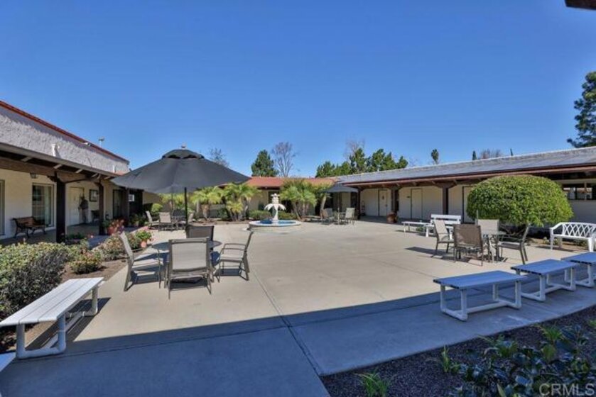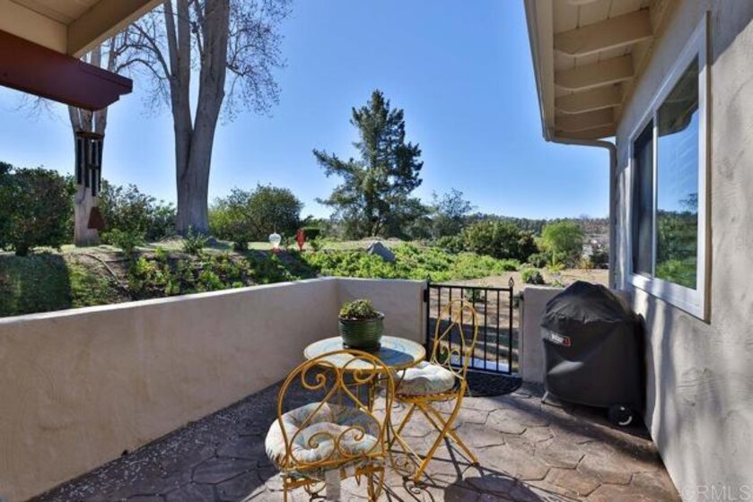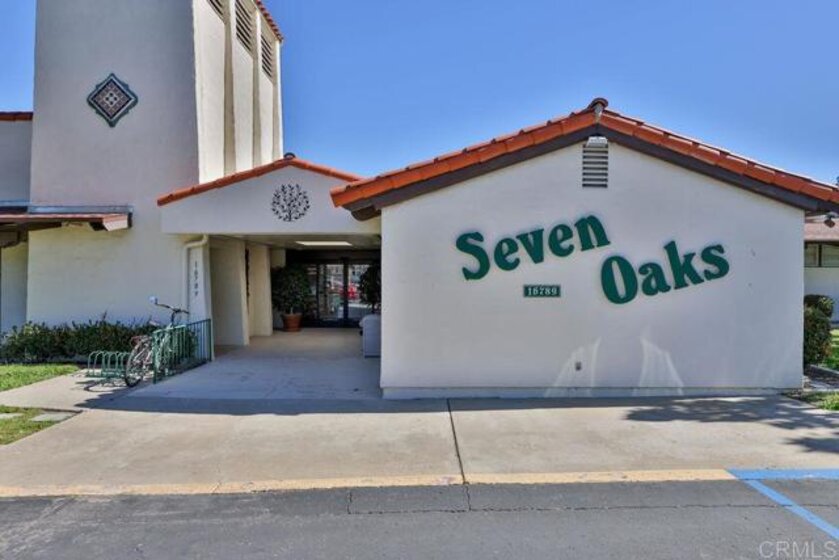Rarely available and largest two bedroom two bathroom single level condo in the exclusive 55+ Seven Oaks community of Rancho Bernardo. This condo is perfectly placed in a very quiet location with open space and neighborhood views. If you enjoy al fresco dining, you will love the covered patio. This condo has wood flooring and plantations shutters over Milgard windows throughout. The kitchen features white cabinets, corian like counters and and an electric range. The laundry room has additional built ins for storage and the bedroom closets have been customized by California closets for easy organization. Parking is a carport for two vehicles and there is also a golf cart garage that measures approximately 7x10. Enjoy a community club and a number of activities; exercise classes, pool and spa, recreation center, within close proximity to all. Nearby trails will take you to shopping and stores.