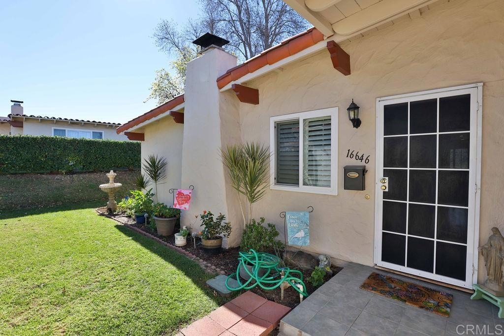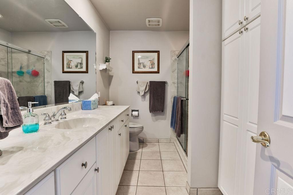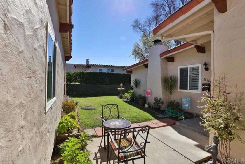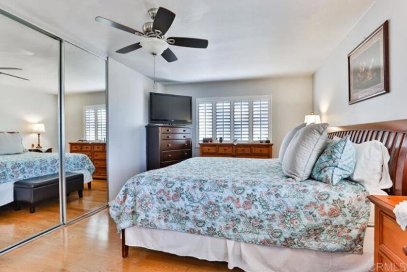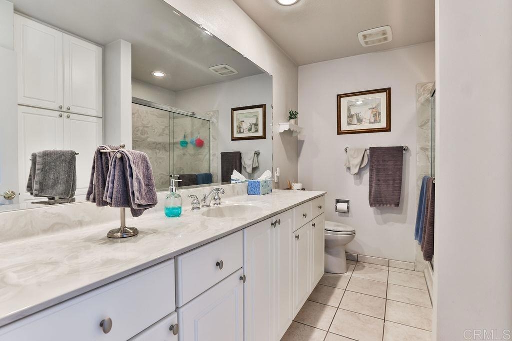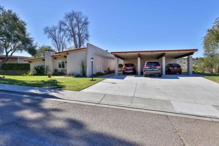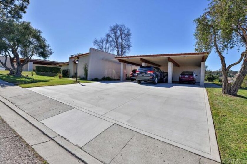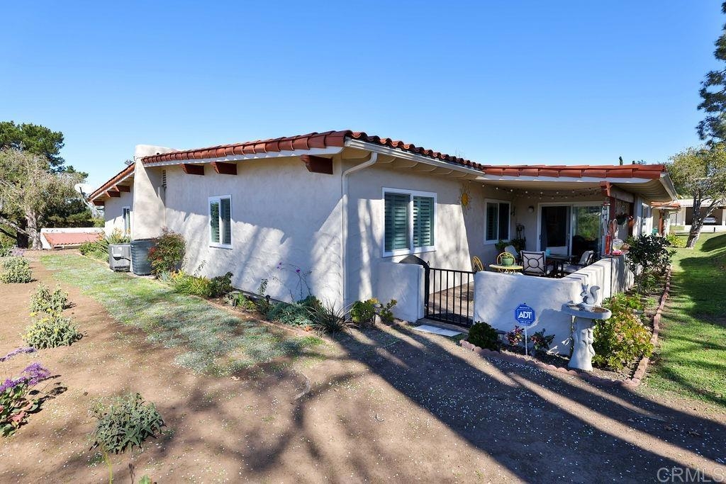 Rarely available and largest two bedroom two bathroom single level condo in the exclusive 55+ Seven Oaks community of Rancho Bernardo. This condo is perfectly placed in a very quiet location with open space and neighborhood views. If you enjoy al fresco dining, you will love the covered patio. This condo has wood flooring and plantations shutters over Milgard windows throughout. The kitchen features white cabinets, corian like counters and and an electric range. The laundry room has additional built ins for storage and the bedroom closets have been customized by California closets for easy organization. Parking is a carport for two vehicles and there is also a golf cart garage that measures approximately 7x10. Enjoy a community club and a number of activities; exercise classes, pool and spa, recreation center, within close proximity to all. Nearby trails will take you to shopping and stores.