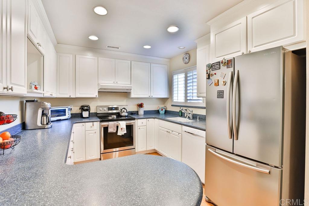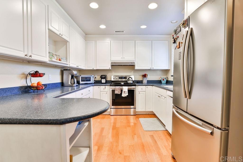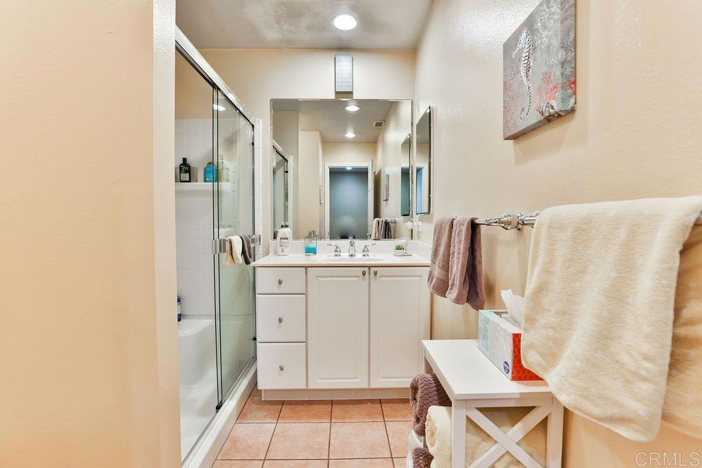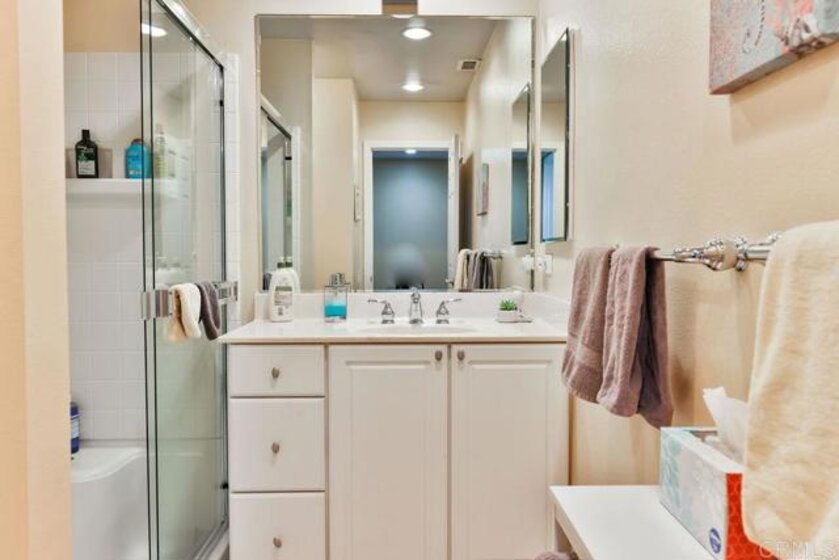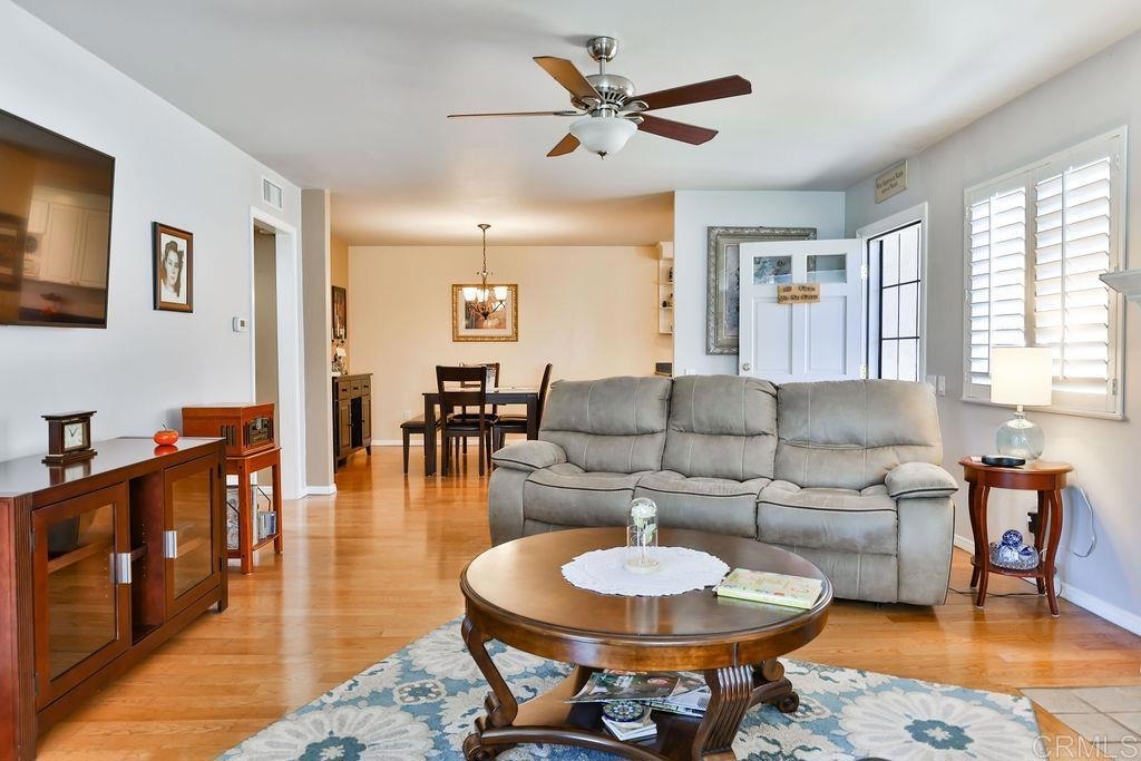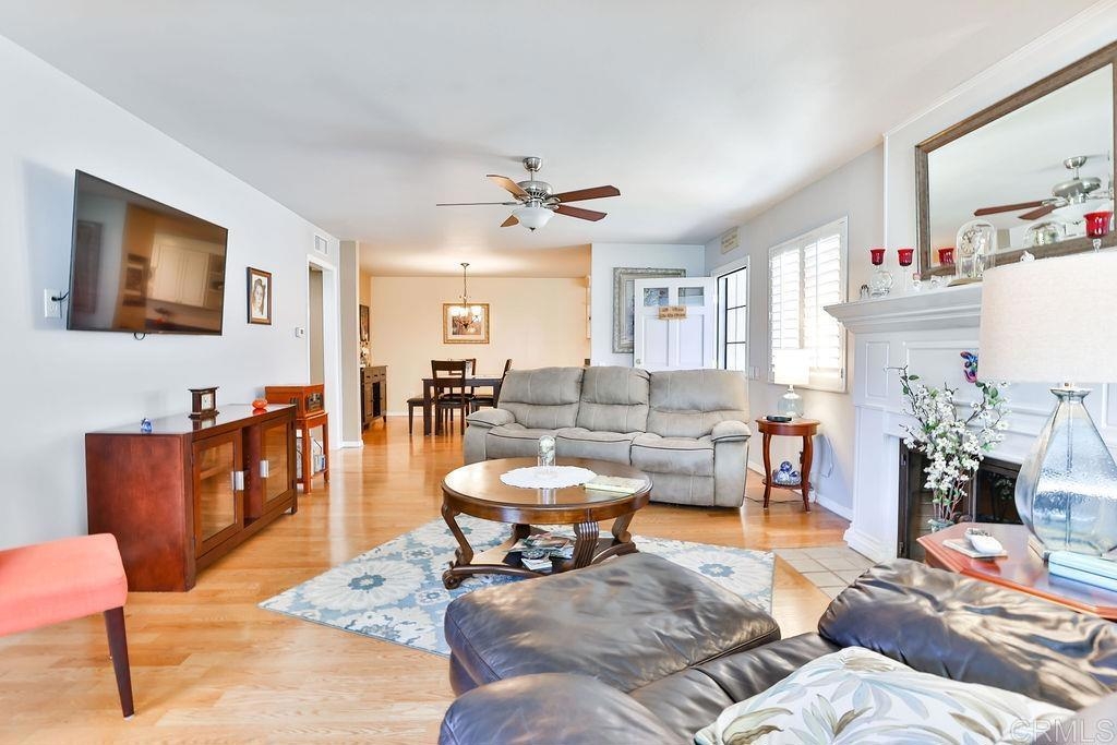Rarely available and largest two bedroom two bathroom single level condo in the exclusive 55+ Seven Oaks community of Rancho Bernardo. This condo is perfectly placed in a very quiet location with open space and neighborhood views. If you enjoy al fresco dining, you will love the covered patio. This condo has wood flooring and plantations shutters over Milgard windows throughout. The kitchen features white cabinets, corian like counters and and an electric range. The laundry room has additional built ins for storage and the bedroom closets have been customized by California closets for easy organization. Parking is a carport for two vehicles and there is also a golf cart garage that measures approximately 7x10. Enjoy a community club and a number of activities; exercise classes, pool and spa, recreation center, within close proximity to all. Nearby trails will take you to shopping and stores.