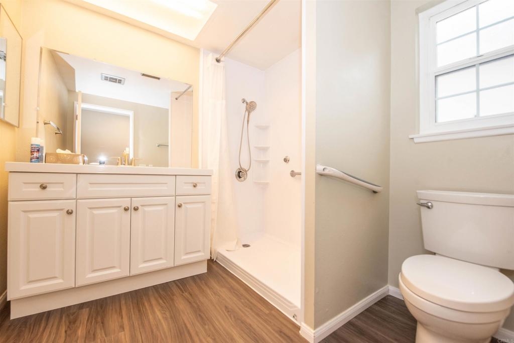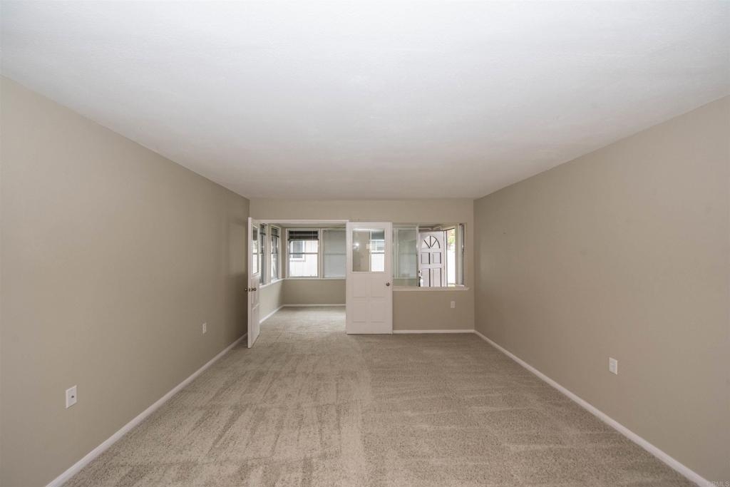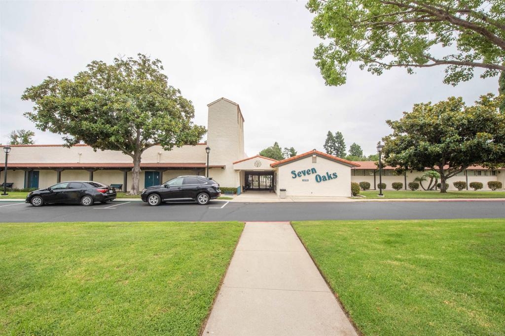 CUTE CONDO LOCATED IN THE 55+ COMMUNITY OF SEVEN OAKS.THIS HOME IS NEAT, CLEAN AND READY FOR IT'S NEW OWNER! AS YOU WALK IN YOU'LL FIND A LARGE ENTRY WAY/SITTING ROOM THAT OPENS INTO THE LIVING ROOM/DINING GREAT ROOM. TO THE LEFT, THERE IS AN ADDITIONAL BONUS ROOM THAT WOULD BE PERFECT AS A DEN, OFFICE OR CRAFTS ROOM. THE KITCHEN HAS NEWER LAMINATE FLOORING, NEWER COUNTER TOPS, NEWER DISHWASHER AND REFRIGERATOR. THE LARGE BATHROOM HAS BEEN REMODELED WITH A WALK IN SHOWER AND RETROFITTED WITH SAFETY BARS IN BOTH THE SHOWER AND NEAR THE TOILET. THE BATHROOM ALSO HAS NEWER FLOORING. THE TWO BEDROOMS ARE SPACIOUS. THIS CONDO DOES NOT HAVE ANY SHARED WALLS! THERE IS ONE CARPORT WITH ADDITIONAL DRIVEWAY SPACE FOR A SECOND CAR. THE LAUNDRY CLOSET IS LOCATED BEHIND THE CARPORT. THIS UNIT SHARES A BEAUTIFUL GREEN BELT BEHIND THE UNIT WHERE NEIGHBORS HAVE BEEN KNOWN TO GATHER TO ENJOY EACH OTHER'S COMPANY OR JUST TO SIT AND RELAX AND TAKE IN A BIT OF NATURE. THE SEVEN OAKS COMMUNITY CENTER IS JUST A SHORT WALK DOWN THE STREET AND OFFERS A POOL, SPA, PICKLE BALL, AUDITORIUM, LIBRARY,FITNESS CENTER, ART ROOM AND MANY OTHER ACTIVITIES. HOA COVERS EXTERIOR MAINTENANCE, WATER, SEWER & TRASH PICKUP. TAX RECORDS SHOW 962 SF HOWEVER THE PROPERTY MEASURES 1266 SF.
