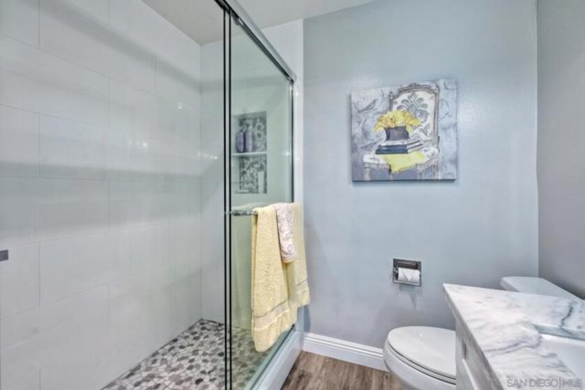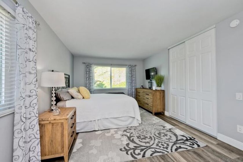 Make this home your private retreat. End unit located at back of building is surrounded by park-like greenbelt.Inviting interior was upgraded in 2017 featuring white kitchen cabinetry and granite counter; stainless appliances and recessed lighting. New toilets and sinks in both baths. Extra sink added in MBA along with cabinets and marble counter plus tiled shower w/frameless door. Also added:dual pane windows and slider; luxury plank flooring; Fireplace surround. Flat screen TVs, Ring doorbell,Nest thermostat will convey with property. Large Laundry Rm; Carport + golfcart garage. The owner of this property has listed some recent upgrades that make this house special. Completed in 2017 Dual pane windows and sliding door installed.Luxury plank flooring (wood look) throughout.Kitchen cabinetry, granite counters, tile backsplash.Stainless steel appliances in kitchen.New paint throughout.New sinks in kitchen and baths.Second sink installed in Master bath.New vanity cabinetry and marble counter in Master Bath.New sinks and faucets in Kitchen and both baths.New shower surround, frameless shower door and shower head.Stacked stone fireplace surround.Wiring for flat screen TV in Living Room.Ring Doorbell.Nest thermostat.ADT security system. Existing in 2017: Recessed lighting in Kitchen; Master Bedroom Closet doors, exhaust fans in Laundry and both bathrooms; updated doors at bedrooms and baths. Membership in the Seven Oaks Community Center is an added bonus. Equipment: Dryer,Garage Door Opener, Washer Other Fees Type: , Sewer: Sewer Connected Topography: LL