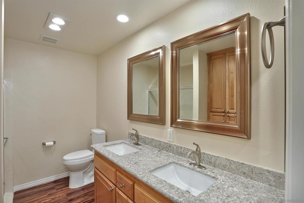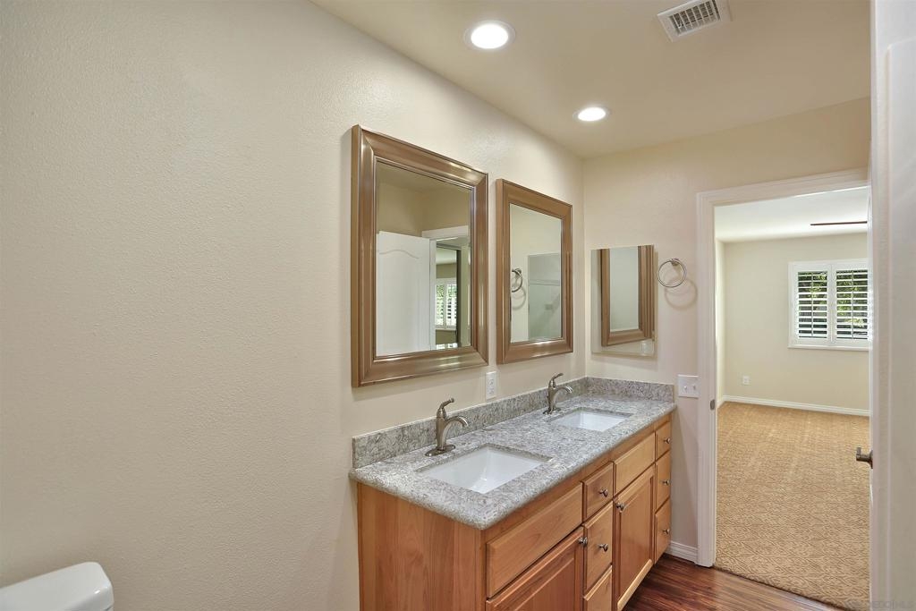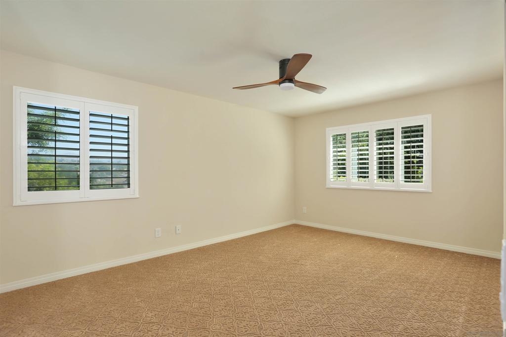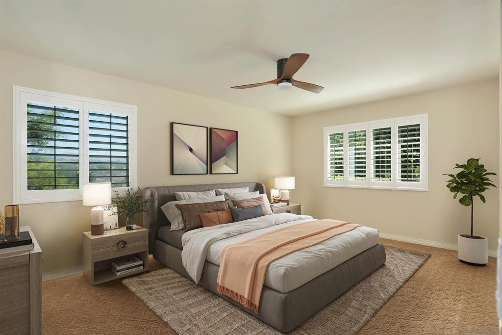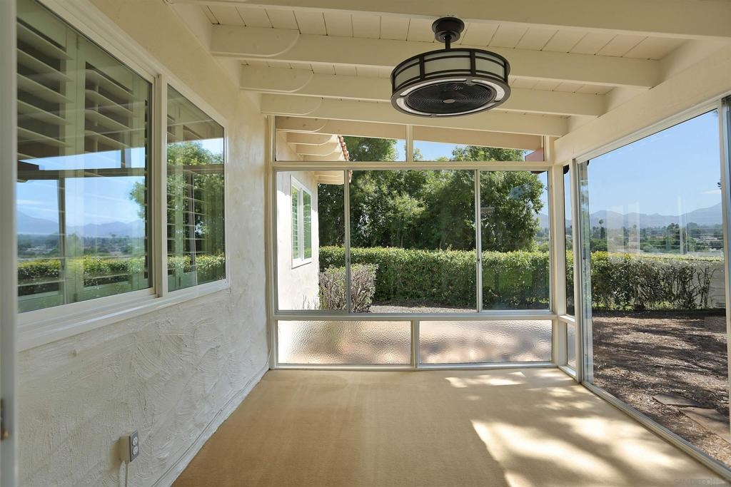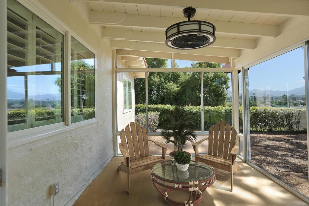 Your comfy oasis awaits, nestled in one of the more secluded dual unit enclaves of Seven Oaks. Beautifully upgraded with warm neutral colors - inviting and cozy are the words that come to mind - and that's how a home should feel. The duplex-like arrangement of this home coupled with the mature spacious landscape is akin to that of a single family home - (See Supplement) (See List of Upgrades - DOC) Upon entering, you'll be welcomed by the expansive family room/living room with cozy fireplace and plush carpeting. A large adjacent dining area and beautifully remodeled kitchen (upgraded cabinetry - sleek track lighting and stainless appliances) complete the front area of the home. Natural light from the oversized windows bathes the primary bedroom which easily accommodates a king bedroom set and sitting area. The ensuite primary bath boasts and over-sized shower and dual vanities with upgraded counters and mirrors. The guest bedroom and bath are ample in size. An interior laundry room has plenty of space even though it is home to both the heating and hot water units. A fully enclosed sun room with slider and glass window wall is located just off the family room and creates the perfect relaxation spot. Enjoy views of the mountains to the east from inside the sun room and outside. Close to Rancho Bernardo shopping, eateries, and community services. You'll truly enjoy the well appointed Community Center. The events and social opportunities make this community one of the most sought after in the area. A complete list of the upgrades is listed in the document section of the MLS. If a "Home" is your goal for the future - You have struck GOLD at this address!