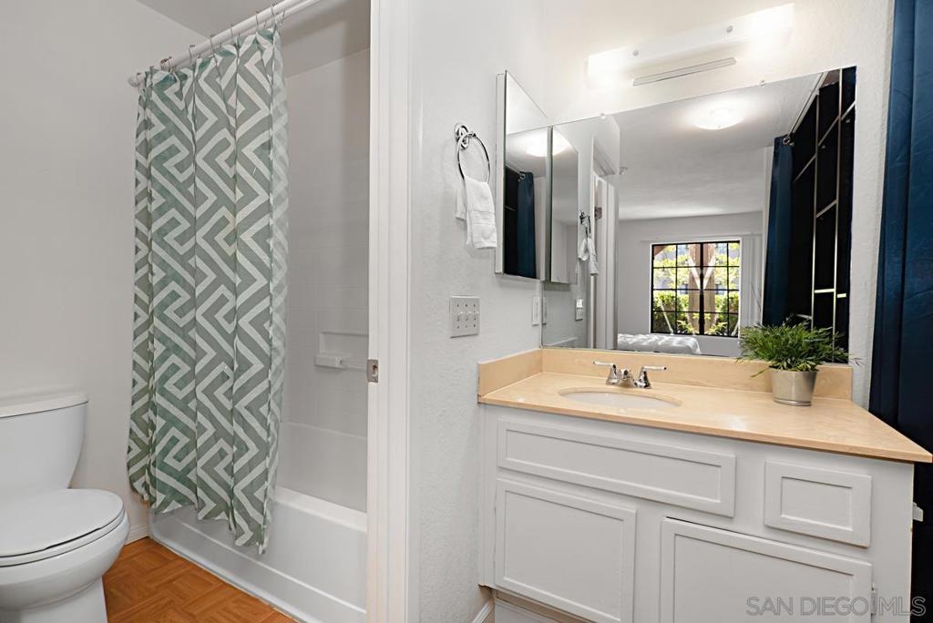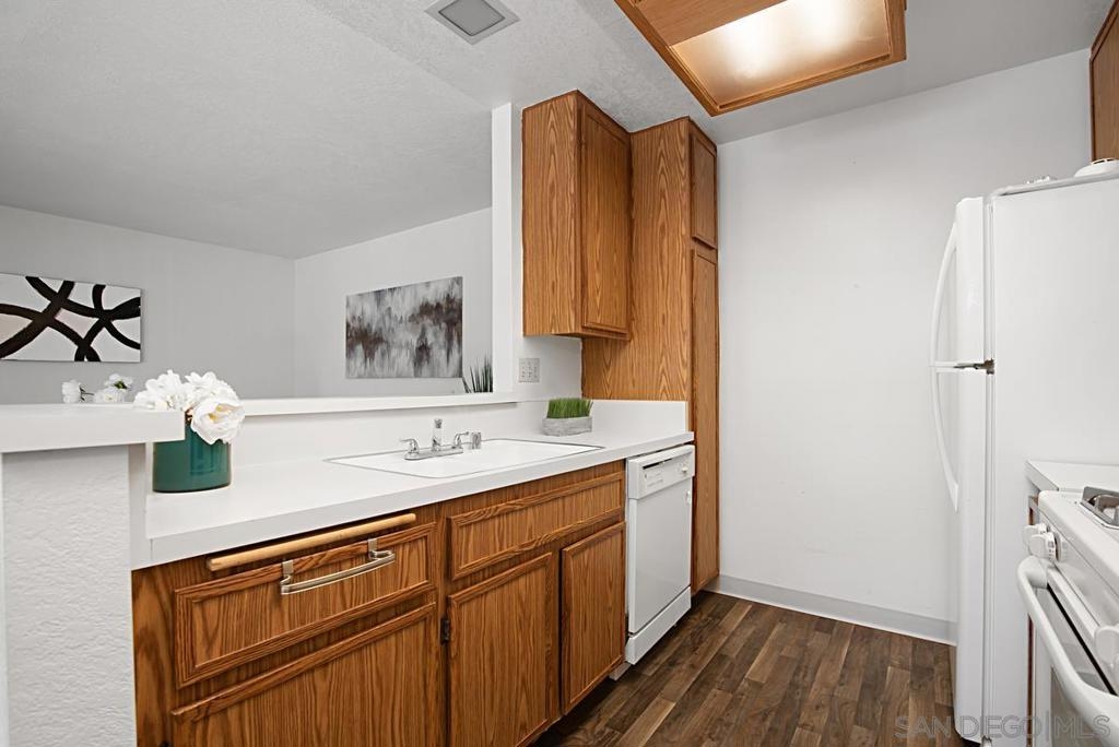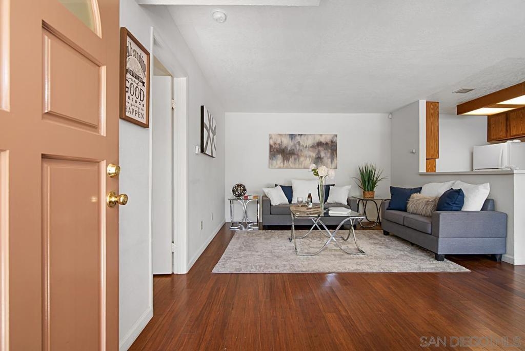 Now staged and ready to go! Easy to Show! Terrific 1 bedroom, 1 bathroom, first floor home in the Stony Brook development in Sabre Springs. This is the larger of the 1-bedroom floorplans. Large patio with extra storage and a washer and dryer. Close, but not too close, to the pool & Spa. Low HOA fees. Nicely landscaped common area, lots of guest parking and recently updated parking lot and carports. Poway school district. Walking distance to Morning Creek Elementary school. Close restaurants, trails, freeways & public transportation.