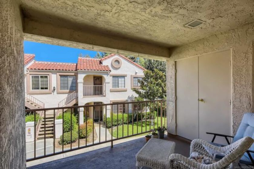 Spacious top floor condo located in the desirable Stony Brook community in Sabre Springs. Each of the 2 bedrooms have their own attached bathroom. Plenty of storage space in the unit and huge balcony off the living room is ideal for indoor/outdoor living. The unit is in a great location within the complex with no buildings directly behind you and peaceful views of trees and green space. AC unit is brand new and under warranty. This pet-friendly complex features lots of green space, hiking trails, easy, convenient parking, a beautiful pool, and low monthly HOA. Equipment: Dryer, Washer Sewer: Sewer Connected Topography: LL