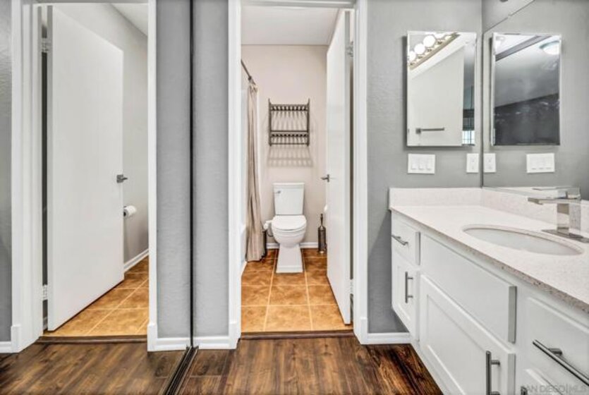Fully updated, light and bright, turn-key 2 bed / 2 bath corner unit in Stony Brook complex of Sabre Springs. Large outdoor balcony perfect for entertaining or quite night at home. Bright and Airy with cascading natural light and perfect layout including Dual Master bedrooms, mirrored closet doors, full bathrooms with vanity. Fully renovated with stainless steel appliances., laminate wood flooring, and in-unit washer and dryer. Equipment: Dryer,Pool/Spa/Equipment, Range/Oven, Washer Sewer: Public Sewer Topography: GSL