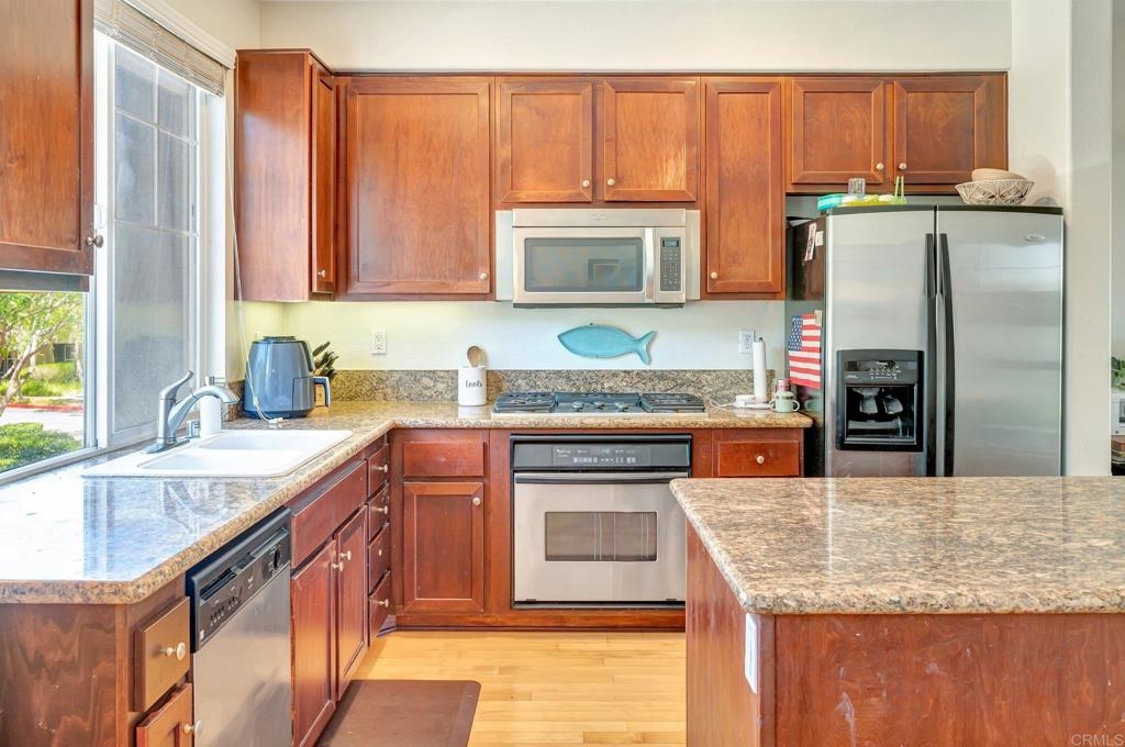 Spacious 3BR/2.5BA Townhome in Sycamore Walk – Highly Desirable Del Sur Location! Welcome to this light-filled, tri-level townhome located in the sought-after Sycamore Walk community of Del Sur. This 3-bedroom, 2.5-bath home features a split-level layout with an attached 2-car garage and is situated within the award-winning Poway Unified School District. The main living area offers soaring ceilings, a cozy fireplace, and abundant natural light. The open-concept kitchen and dining area include granite countertops, stainless steel appliances, and plenty of cabinet space—perfect for entertaining. The spacious primary suite features an ensuite bath, a walk-in closet, and a private balcony with peaceful canyon views. Additional views can also be enjoyed from the downstairs family room. In-unit laundry and ample storage add to the home's convenience. Community pool access, nearby parks, and scenic trails complete the experience—all just minutes from top-rated schools, shopping, and dining.