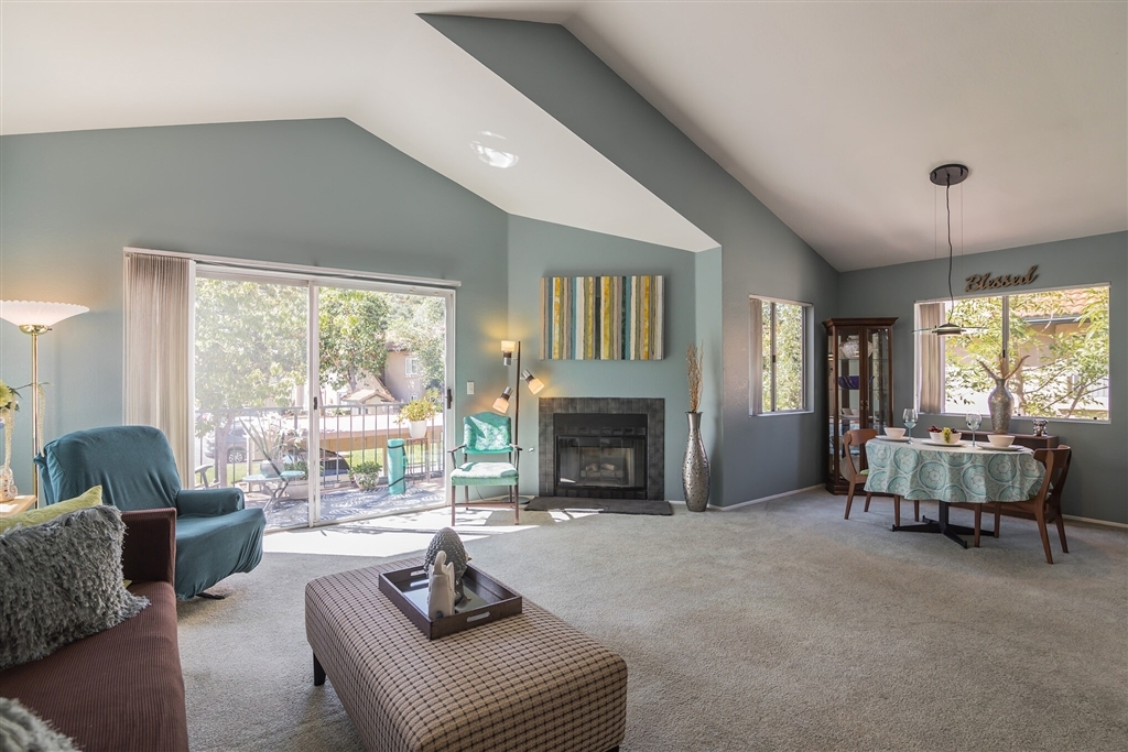 HIGHLY DESIRABLE TOP FLOOR CORNER UNIT! Gorgeous 3 bedrm, 2 baths & balcony. The Falls in RB is a resort-like complex w/clubhouse, tennis courts & pool! Unit features vaulted ceilings & plenty of windows allowing natural light providing an airy feel throughout. Peaceful & private, unit is freshly painted. The living rm fireplace provides a cozy ambiance. Bedroom #3 is currently used as an office. Side-by-side full sized washer/dryer. Award winning Poway Unified School Dist.1 covered parking +1 unassigned Condo was replumbed in 2009. 1 assigned parking under carport w/storage area close to unit and 1 parking in unassigned open parking.. Neighborhoods: Camino Bernardo Complex Features: ,,,,,,, Other Fees: 0 Sewer: Sewer Connected Topography: LL