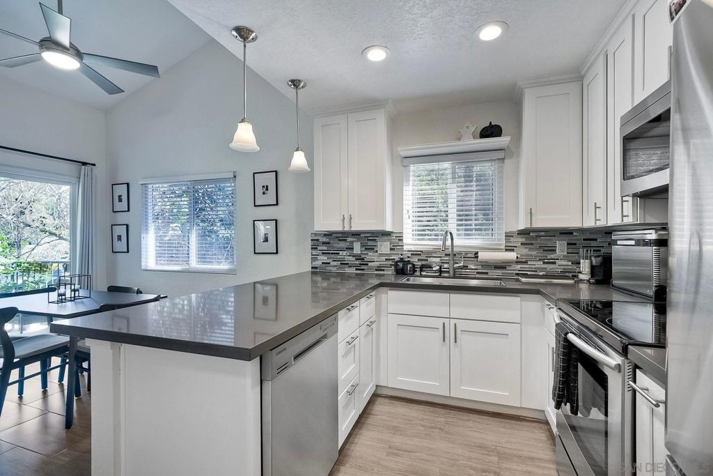 Discover your dream home in this beautifully remodeled 2 bed/2 bath upstairs condo, featuring a fully updated kitchen that boasts modern stainless steel appliances, sleek countertops, perfect for any culinary enthusiast. The unit is tucked away with views of tree tops and the native hillside creating a very private feel. The outdoor balcony is perfect for relaxing. The new HVAC unit will let you decide your perfect temperature cool or warm. The condo features new carpet and was recently painted throughout. The double paned windows and sliding door are energy efficient and make indoor living quiet. Enjoy cozy evenings by the fireplace in a bright and airy living space with vaulted ceilings. There is an assigned carport space with storage and plenty of guest parking. Take advantage of the community swimming pool, rejuvenating jacuzzi, and tennis court. Easy access to the 1-15 freeway makes commuting a breeze while still enjoying the tranquility of a peaceful setting. Don’t miss out on this gem! Schedule a viewing today and envision your new life in this idyllic condo.