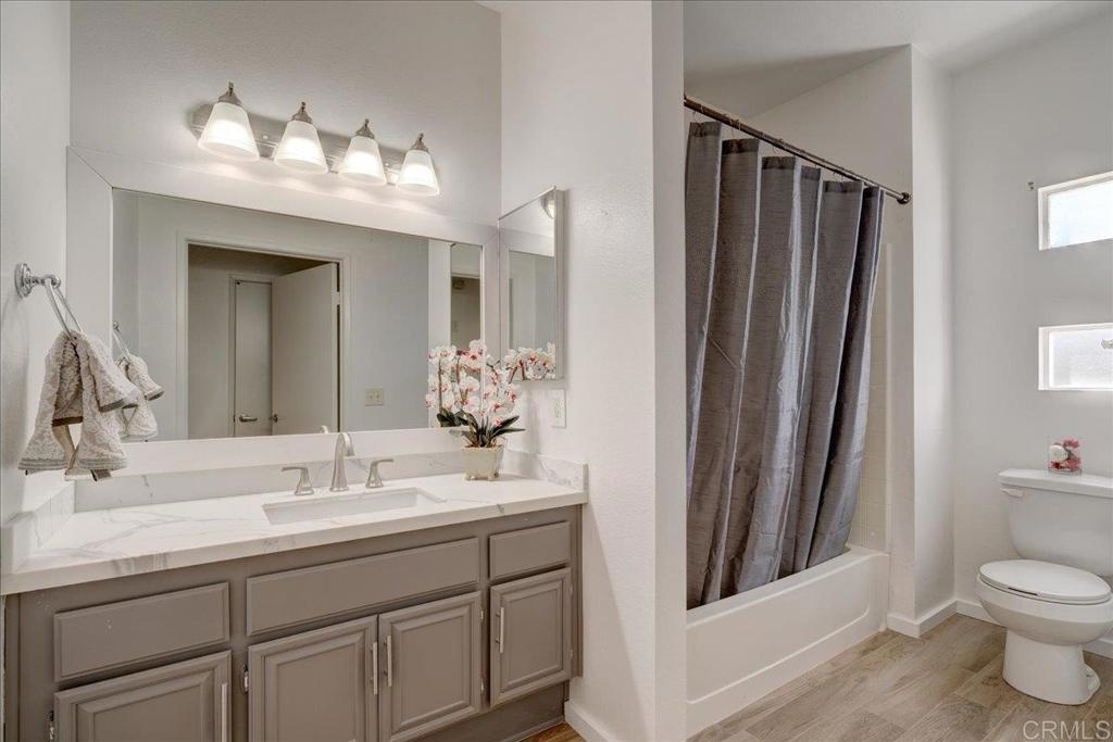 Beautifully remodeled condo with quartz countertops, stainless steel & black appliances, new tile flooring, great location on bottom floor with patio and views of the mountains. The Summit is close to 4S Ranch shopping, restaurants and easy access to freeways. Community features include pools, tennis courts, clubhouse, exercise room, BBQ area.