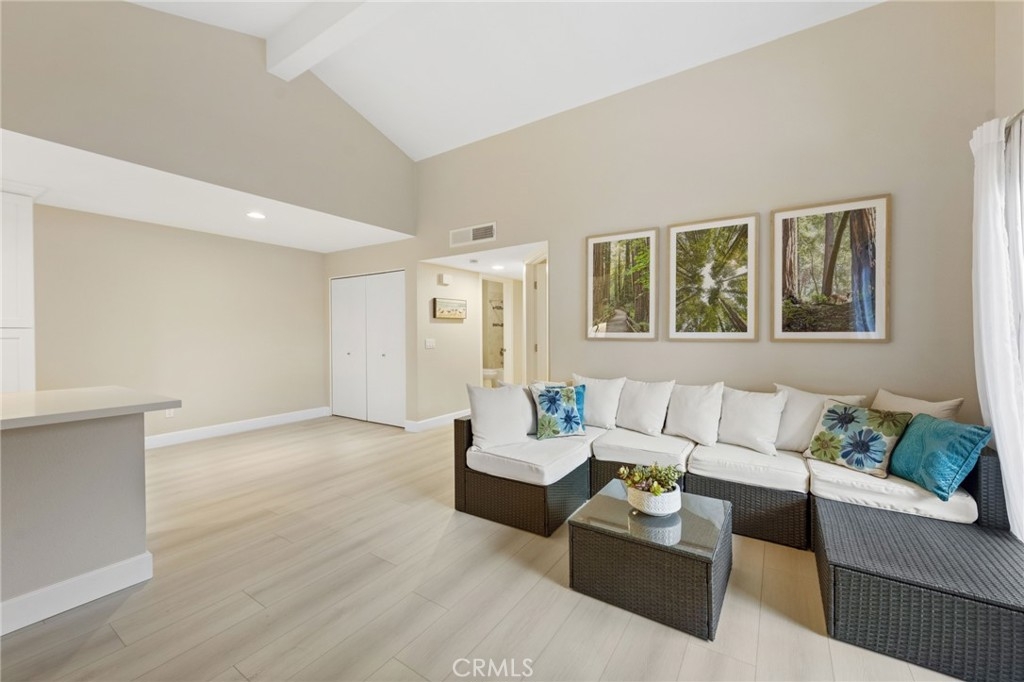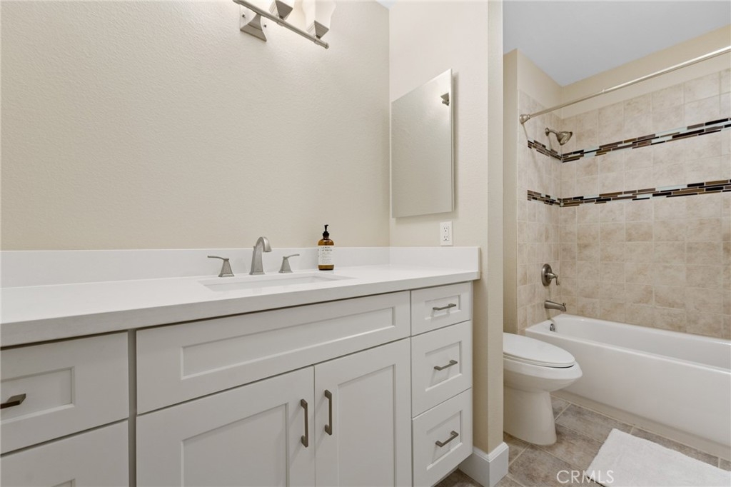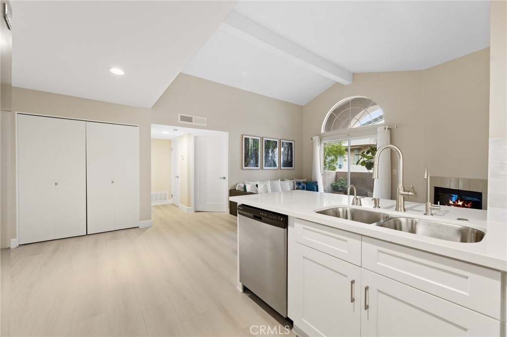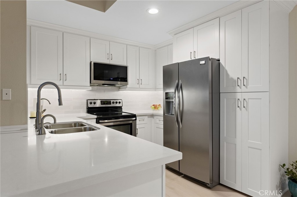 You will love living and entertaining in this beautiful, newly-renovated top-corner unit nestled against a nature preserve of 4S Ranch boasting sunset and mountain views. Vaulted ceilings, a cozy fireplace, and luxury vinyl plank flooring greet you as you enter the open-concept kitchen-living-dining space. The kitchen has brand-new solid wood cabinets, quartz countertops, stainless steel appliances, a hot water dispenser, and RO water filter. The spacious bedroom features a large walk-in closet, new Berber carpeting, and a great view. This turn-key home also features a new central heating and air conditioning unit, a new hot water heater (both with transferable warranties), new paint throughout, a patio with extra storage, in-unit washer and dryer, and new molding and solid wood doors. Community amenities include two resort-style swimming pools, tennis courts, a gym, and a clubhouse with a pool table and ping pong. In just a short walk, you can be on a trail or at the 4S Commons Town Center with many shopping and dining options. Water and trash are included. No Mello Roos taxes!