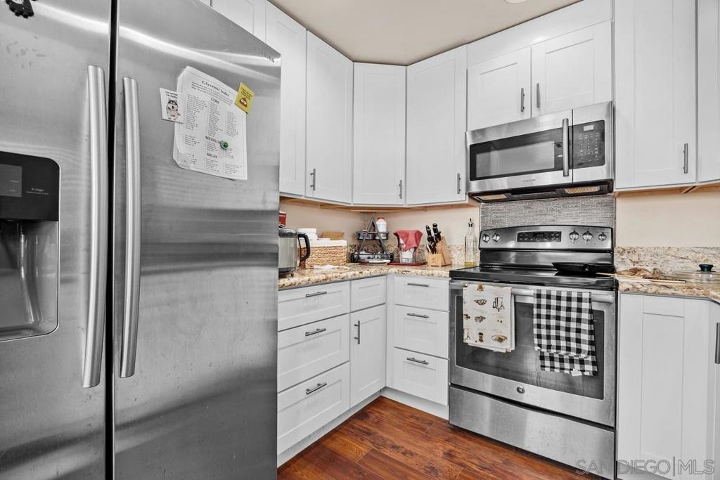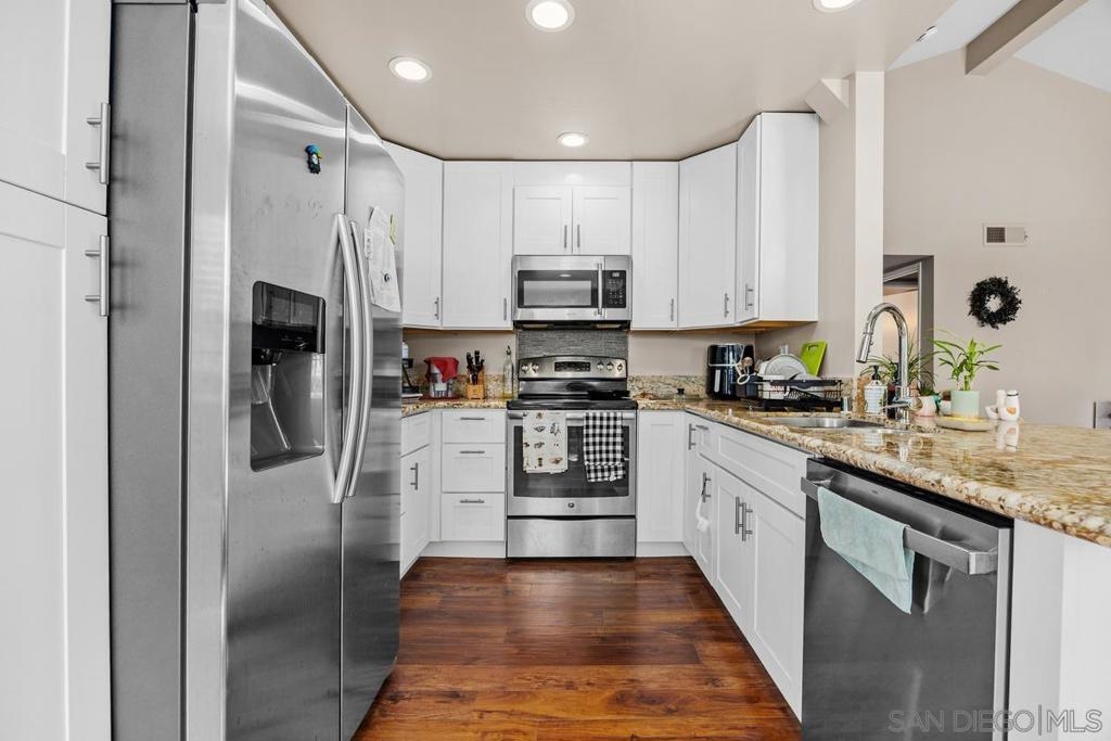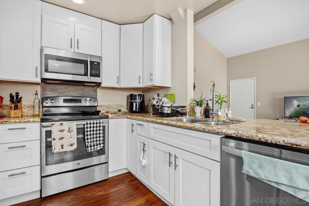 Charming Summit 3b/2b condo with an open, airy layout. The expansive living room boasts soaring ceilings, a warm fireplace & direct access to a private balcony. The stylish kitchen is complete with granite counters & sleek white cabinetry. Enjoy your morning coffee from the sunny balcony, with natural light streaming through plentiful windows throughout the home. A detached garage and a carport. Located within the top-rated Poway Unified School District, this community offers comfort, convenience, and an ideal location. New dishwasher, washer & dryer, updated window treatment, new toilets, and upgraded flooring throughout (excluding living room) in 2022. New showers installed in both bathrooms in 2023.