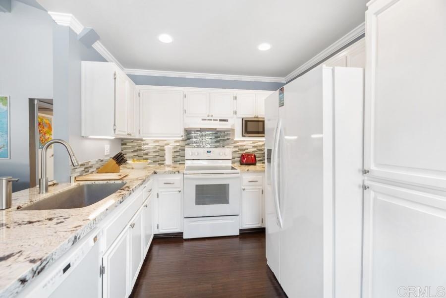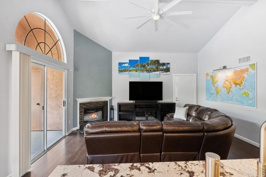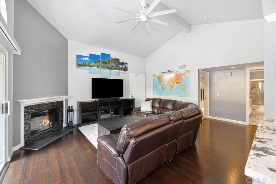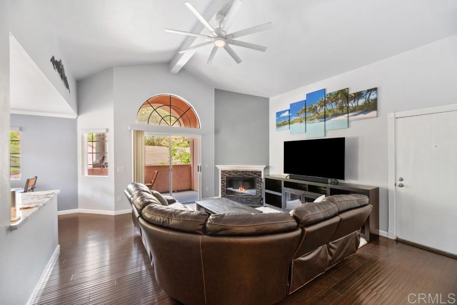 ENJOY THE BEAUTY OF RANCHO BERNARDO at THE SUMMIT! Beautifully furnished and the furniture and kitchen accessories can be included! Wonderful location within the complex at the north end providing privacy and peaceful surroundings. UPPER level 3 bedroom/2 bath with view/balcony! Enjoy this tastefully remodeled condo UPGRADED THROUGHOUT with high ceilings and view! Just bring your toothbrush and clothes and the furniture can stay! GARAGE with storage AND one dedicated parking space plus guest parking close by! Enjoy the chef's kitchen with high end Brazilian White Splendor granite counters and white cabinetry enhanced by the subway tile backsplash. Dark wood type plank flooring in living areas, crown molding and upgraded tile fireplace surround. Remodeled baths with the same high end granite counters! Spacious primary bedroom with a full wall width of closet. Interior laundry with full size side by side washer/dryer. Storage room on balcony. The Summit features 2 pools, 2 spas, tennis court, exercise room, banquet room with views! Close to 4S Ranch Commons without the Mello Roos and part of the Distinguished Poway Unified School District!