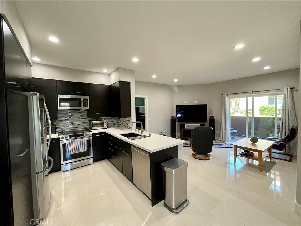 Welcome to this beautiful turnkey 1st level condo. Enjoy spacious open concept with floor to ceiling renovations where nothing was spared throughout the unit. Gorgeous porcelain tile flooring throughout (NO carpet) and large baseboards. Painted tastefully throughout and enhanced with recess lighting. Windows and slider have all been replaced. Beautiful Kitchen and bathrooms with matching espresso cabinets and quartz counter tops. The kitchen has all Stainless steel appliances and includes the refrigerator. In both bathrooms enjoy dual sinks and water fall faucets. Both bathrooms also have large walk in tile showers with glass doors. The master bedroom has a large walk-in closet with lots of closet organizers. Indoor laundry room is in the second bathroom and does include a very nice matching washer and dryer set! Enjoy your own private outdoor covered patio that includes a storage closet. The unit is in Prime location, west of the 15 freeway, just a block off Rancho Bernardo Road and in Poway Unified School District. It’s less than a 5 minute walk to Apple’s new Tech Campus and just a 5 minute walk to the 4S Commons Town Center shopping mall that includes grocery stores and restaurants. The unit is ideally located at the South end of the complex, quiet and away from tennis courts. There is one assigned parking space that’s covered and just 4 spots away from the unit and straight out from your unit is your owned single car garage with newer role up door and electric opener. Complex amenities include pool / spa, two tennis courts, gym and clubhouse. The tax bracket is very low and there’s NO Mello Roos. Do NOT miss this one!!