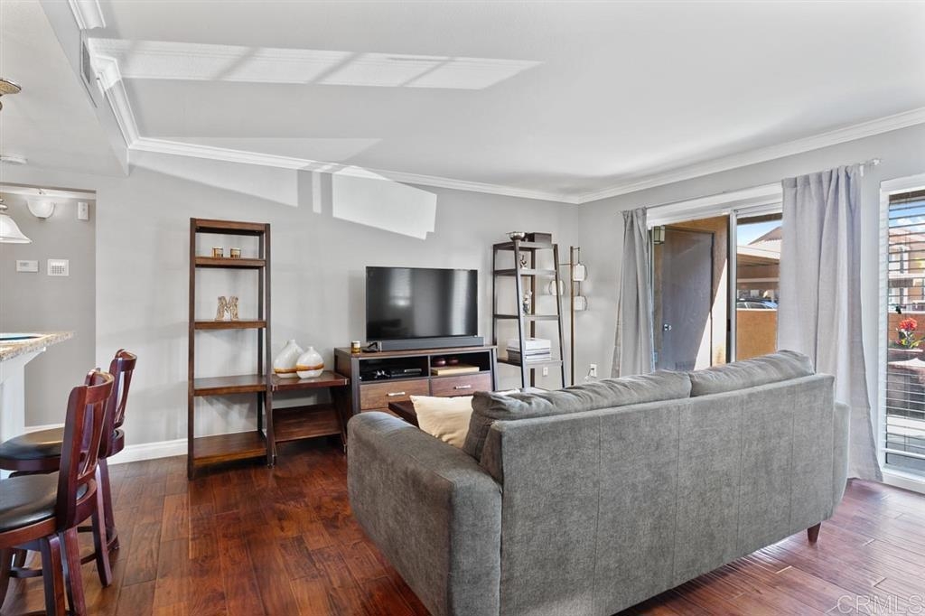 Entry level end-unit with no stairs and an extra large enclosed patio! This is the largest 1 bedroom floorplan in community of Villa Taviana. Wonderful complex has 2 nice pools, spas, tennis courts, clubhouse, gym. Water/trash INCLUDED. This unit is completely move-in ready. Wood floors, granite countertops, stainless steel appliances, custom kitchen backsplash. Nice newer laundry machines included. Central A/C. Complex is FHA and VA approved. Ultra-convenient location for commute, shopping, schools.