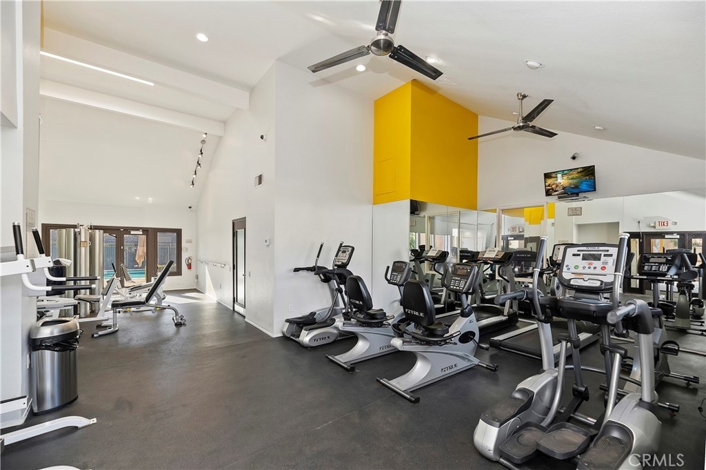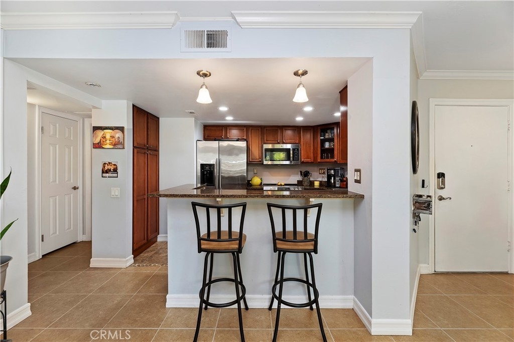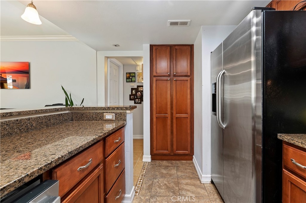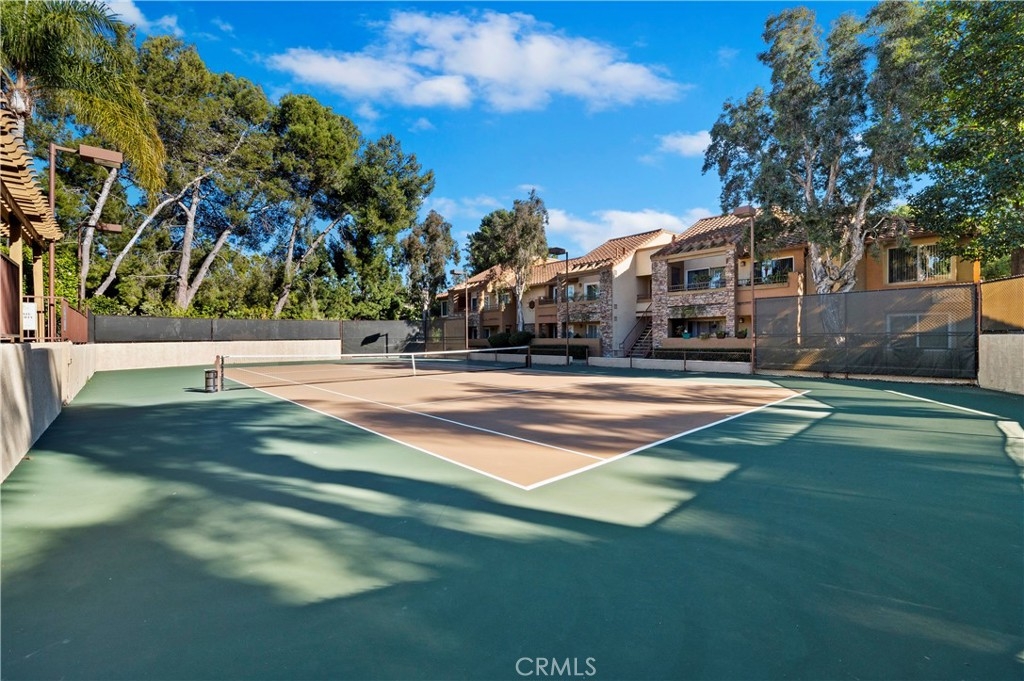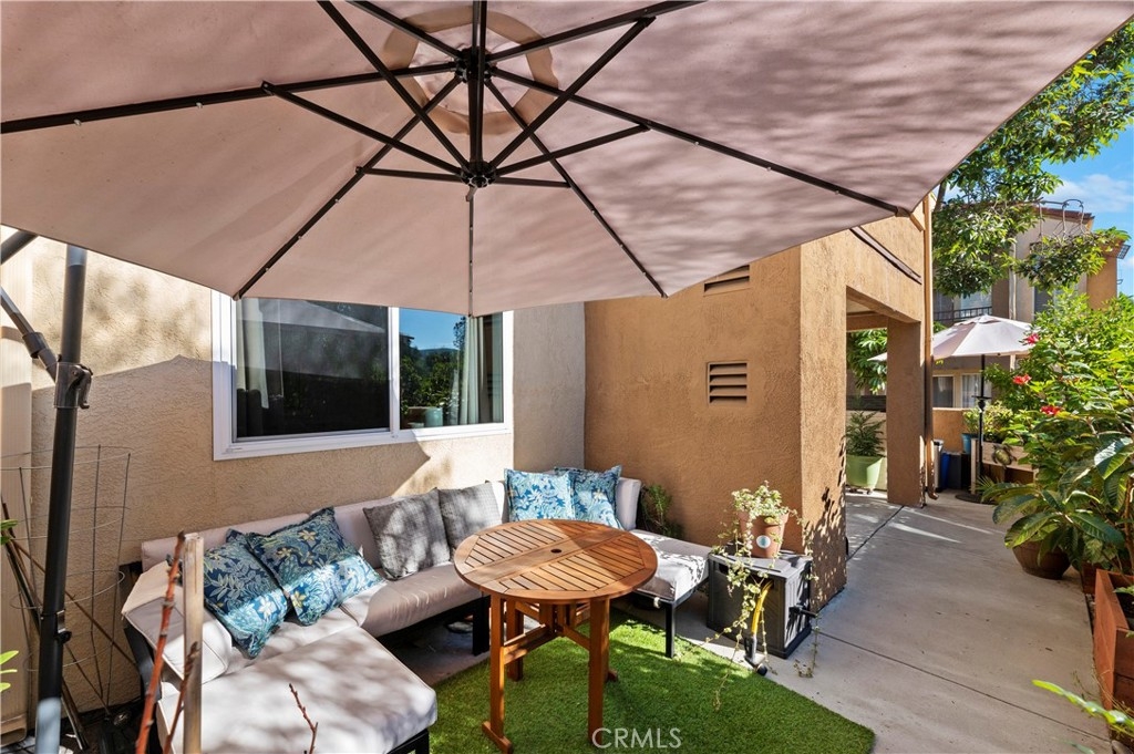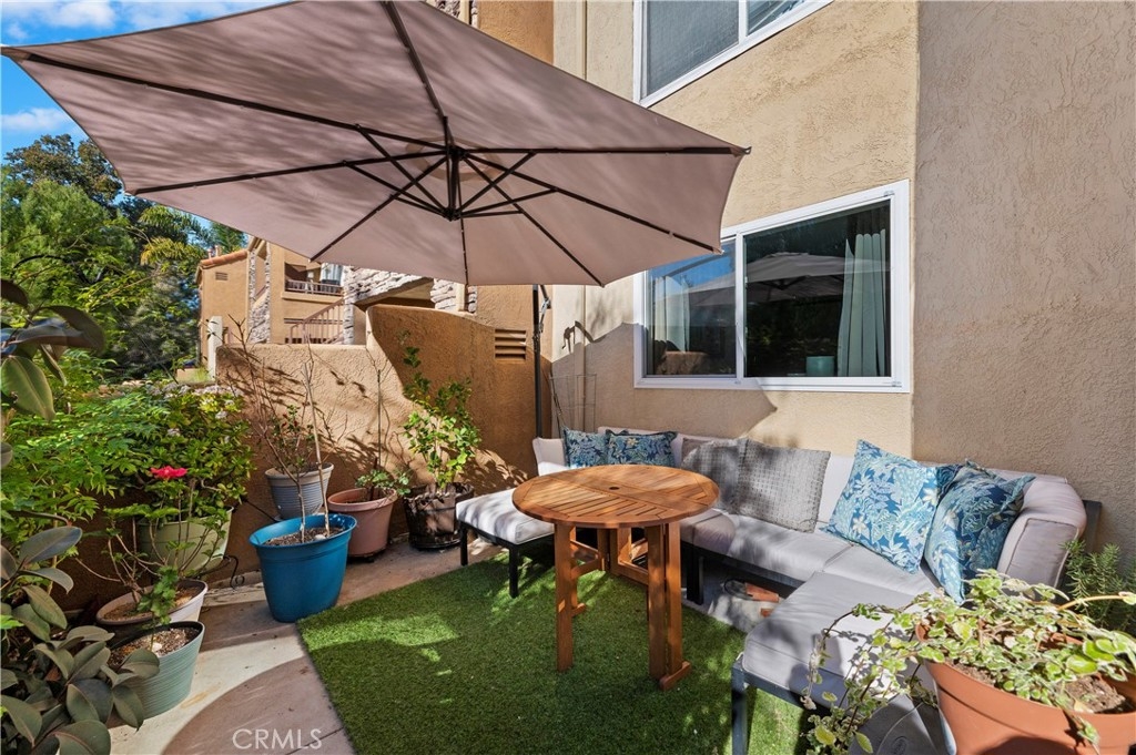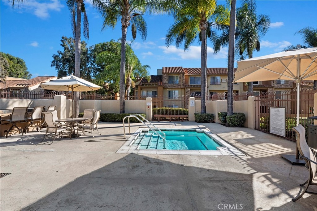 Experience the pinnacle of contemporary living in this inviting 1-bedroom, 1-bathroom downstairs unit at 15273 Maturin Dr. #34, ideally situated in the highly sought-after community of Villa Taviana in Rancho Bernardo. The open floor plan seamlessly integrates the living, dining, and kitchen areas, providing a perfect space for both relaxation and entertaining. Stylish tile flooring, elegant granite counters, and a range of nearly new stainless steel appliances, including a stove, dishwasher, farm sink, microwave, and garbage disposal, showcase the tasteful upgrades. The bedroom is a sanctuary of comfort, featuring a large walk-in closet and a charming barn door entry for closet giving rustic charm. Inside laundry adds to the convenience, accommodating either a stackable washer-dryer unit or a combo washer-dryer unit. Step outside to a spacious and tranquil back patio, offering serene views of lush trees – a perfect spot to unwind, dine al fresco, or simply enjoy the beauty of the surroundings. This condo comes with the added convenience of 2 assigned parking spaces, one of which is covered. The highly desired community boasts incredible amenities, including 2 pools, spa, firepit, tennis courts, a clubhouse, gym, fitness studio, EV Charging and more – providing a resort-like lifestyle for residents. Recent upgrades within the last 5 years include a new water heater, windows, and a sliding glass door, ensuring both energy efficiency and modern aesthetics. Upgraded light fixtures throughout add a touch of contemporary elegance. Embrace the opportunity to make this stylish and upgraded condo your new home. With its prime location and a host of amenities, 15273 Maturin Dr. #34 offers a lifestyle of comfort, convenience, and sophistication. An absolute must see!