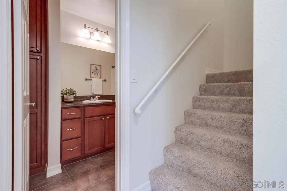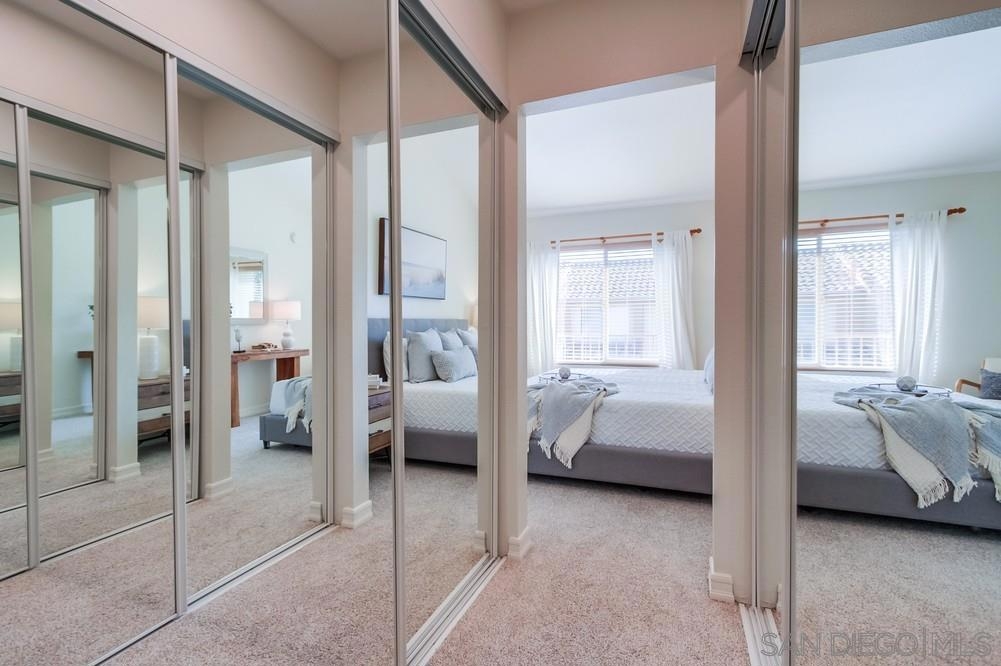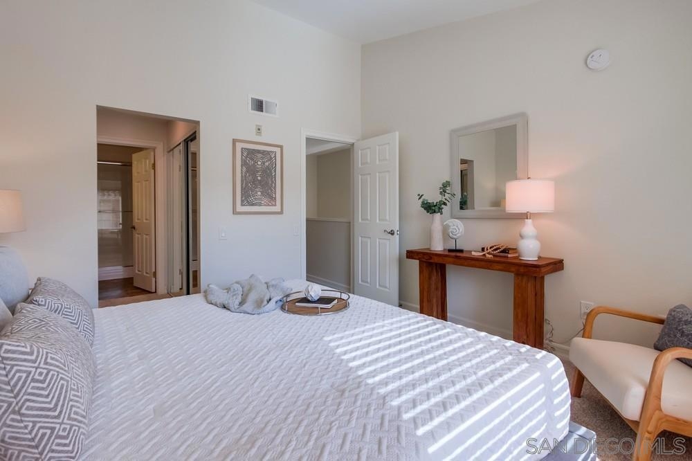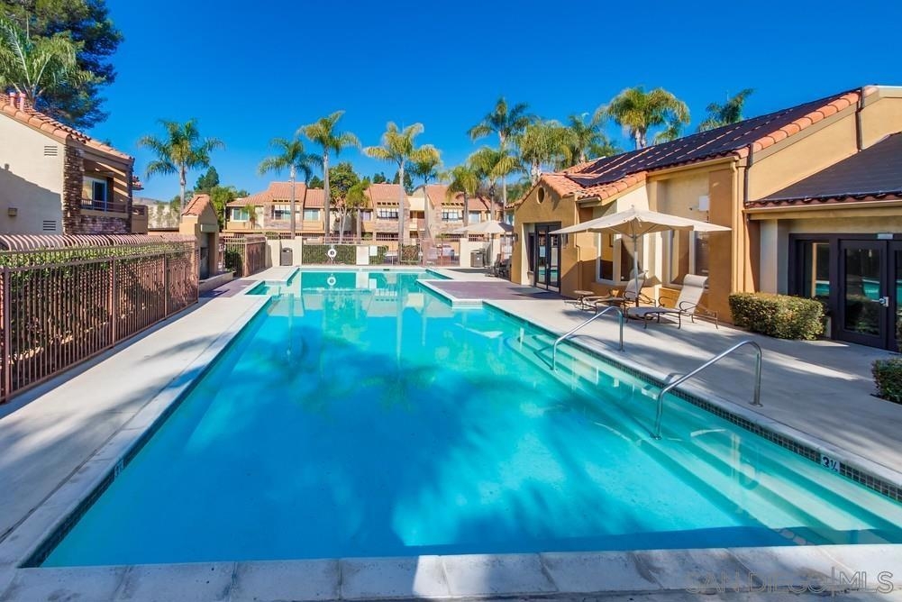 Come see this attractively-priced corner unit in the back of the complex with no one above you! Freshly improved with new carpet and paint, refrigerator, and new primary shower. Vaulted ceilings, washer & dryer in unit, parking for two cars, plus lots of windows and natural light too. Well-maintained complex that offers a fitness center, two heated pools, spa, tennis, and electric-car charging stations. HOA fee includes water and trash. Located in the award winning Poway school district, and close to dining, shopping and freeways - wow!