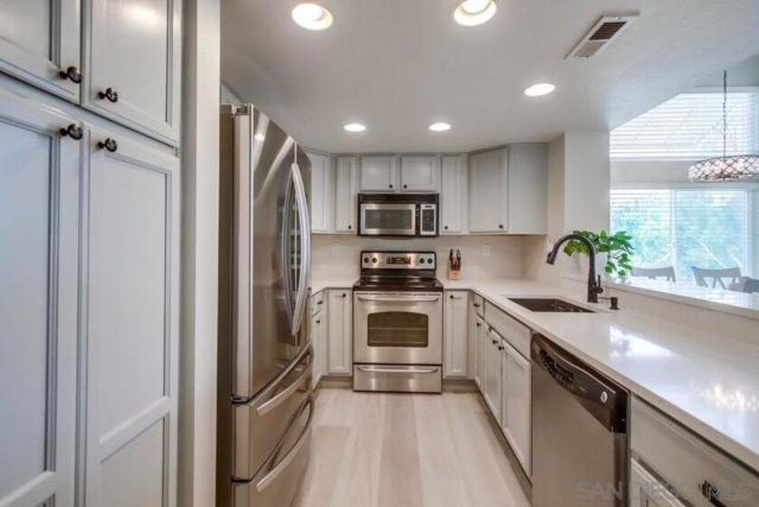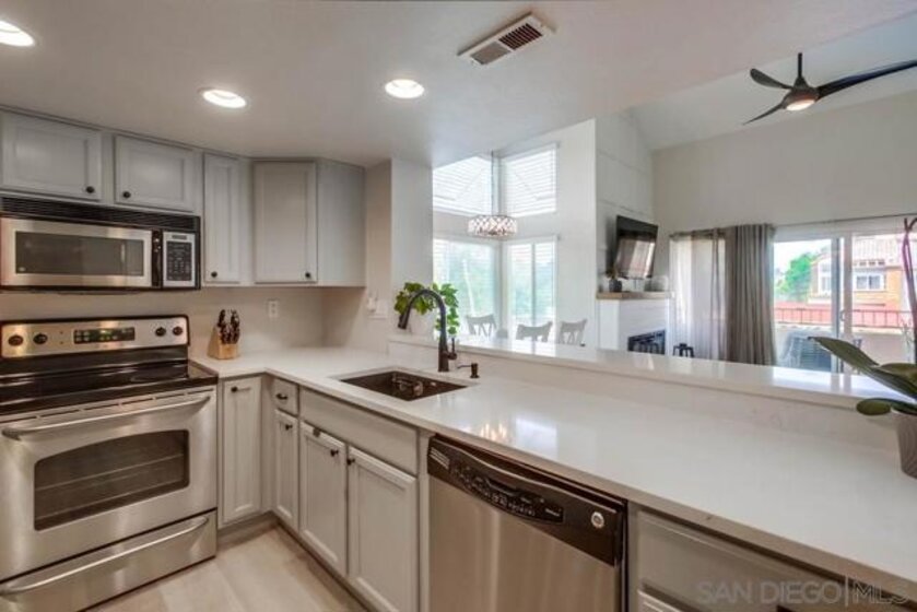 Welcome home to this beautifully upgraded top floor 2 bed / 2 bath townhome in Rancho Bernardo’s Villa Taviana community! This home is truly move-in ready with new laminate flooring & double pane windows throughout, new A/C & water heater, new modern farmhouse finishes including ceiling fans & plantation shutters! This home boasts high ceilings, spacious rooms & an open concept floor plan that allows one room to flow seamlessly into the next. You’ll find your first bedroom & full bath on the entry-level, & head upstairs to find your master bedroom with a custom closet system & a fully remodeled master bathroom! Enjoy your modern chef’s kitchen with a built-in breakfast bar or relax on your private balcony overlooking your neighborhood & plenty of lush landscaping. The complex offers its residents resort-style amenities including two sparkling pools, spa, tennis courts, fitness center & a playground! Centrally located near shopping centers, top Poway Unified schools & parks! Equipment: Range/Oven Sewer: Public Sewer Topography: LL