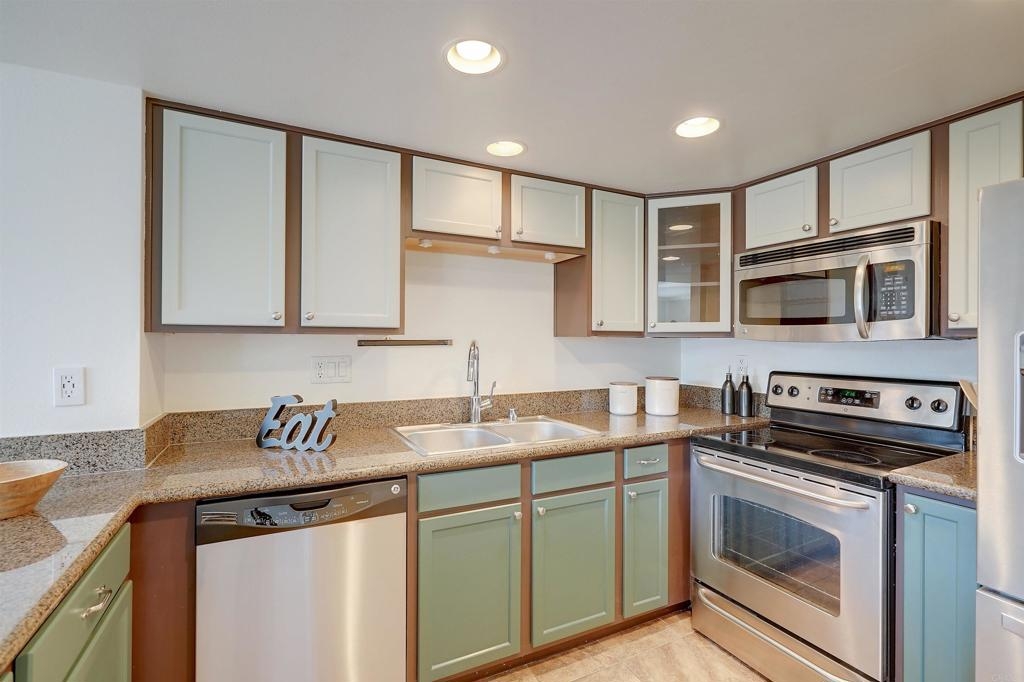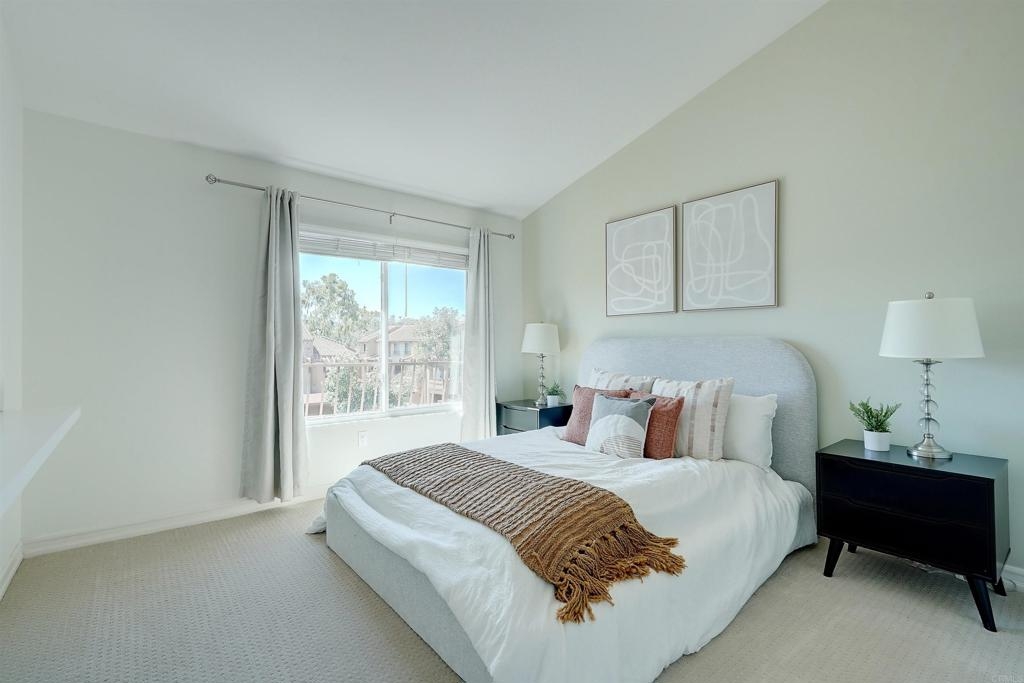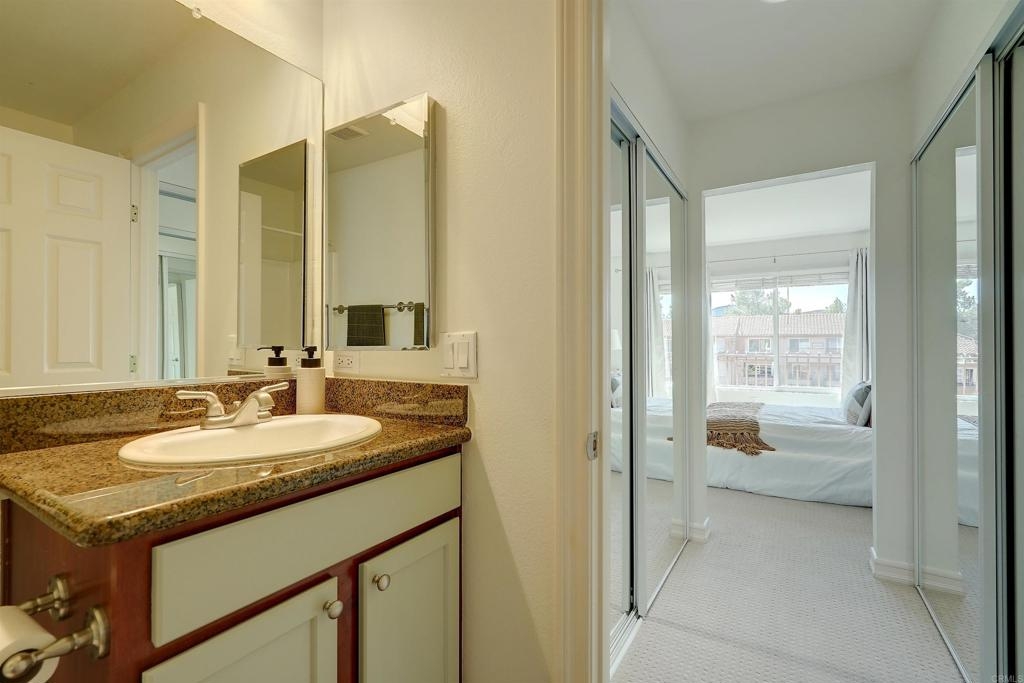 Nestled in the desirable Rancho Bernardo community, this light-filled condo offers a bright and inviting atmosphere. Recent interior paint, and modern updates throughout. The open living space is highlighted by sleek laminate wood flooring, plush new carpeting in the bedrooms, and a kitchen that boasts granite countertops, stainless steel appliances, and recently painted cabinets for a clean, contemporary feel. The unit is quiet and away from the main roads and is situated in the center of the community. Resort-style amenities include a clubhouse for gatherings, two sparkling pools, relaxing jacuzzis, BBQ grills, tennis courts, a fitness center, a full gym, and a dance studio—all within the community. Located near Turtleback Elementary School in the award-winning Poway Unified School District.