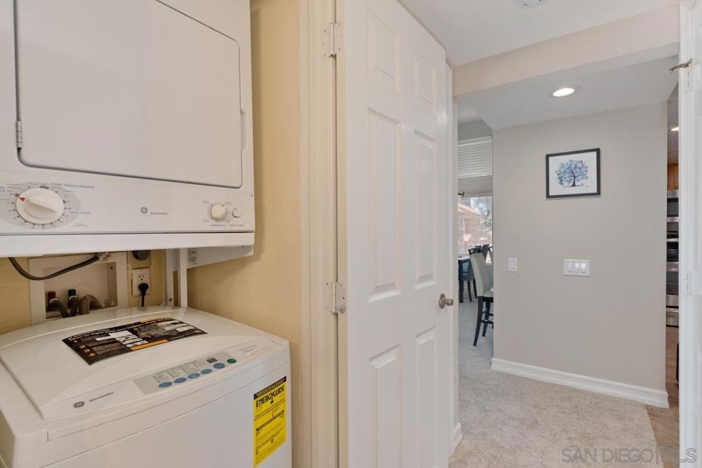 Gorgeous and hard to find 2 story condo in the highly sought after complex of Villa Taviana. The soaring ceilings, spacious and open layout create a beautiful and inviting space. There is a full bedroom and bathroom downstairs. The home features fresh paint, brand new carpet, maple cabinetry, granite countertops in the kitchen and both bathrooms, stainless steel appliances, newer water heater, stacked full size washer/dryer, private patio. Quick access to I-15 makes commuting a breeze. Poway School District with award winning schools. The complex features resort style facilities and make this home an absolute delight... don't miss out! Villa Taviana offers its residents resort-quality amenities, which include two sparkling pools, spa, exercise room, tennis courts, fitness center, separate yoga /exercise room, a club house and a playground! Property has two assigned parking. Community also offers plenty of electrical vehicle charging. Complex Features: ,,,,,, Equipment: Dryer, Range/Oven, Washer Sewer: Public Sewer Topography: LL