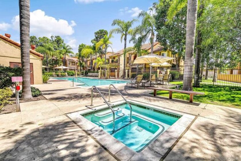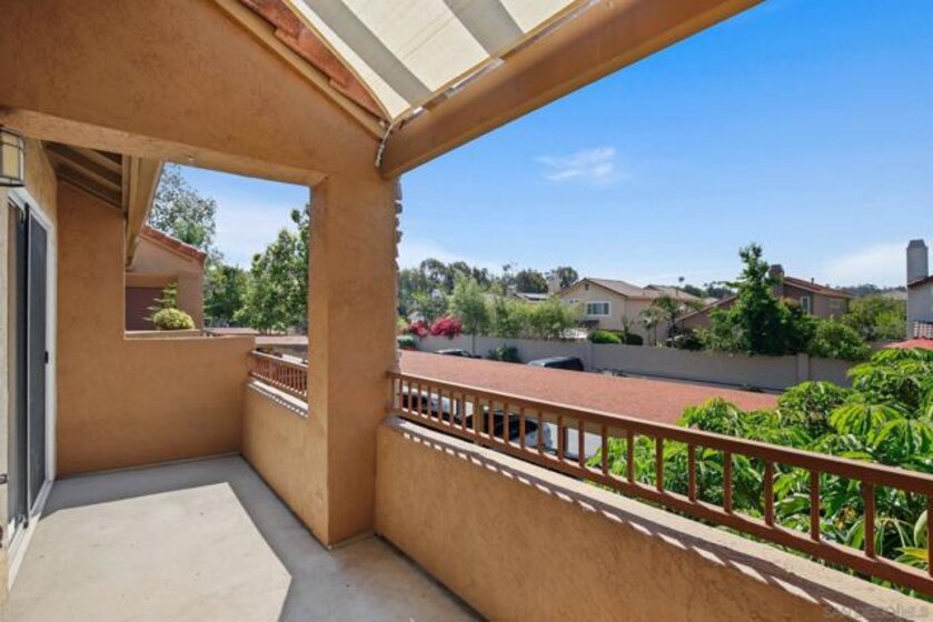 Come live your best life in this gorgeous top floor end unit located in a quiet enclave within the community of Villa Taviana. As you enter you will gaze upon a light and bright open floor plan that allows the living room, dining area and kitchen to flow seamlessly together. Open the living room balcony doors wide to let the cool breezes flow through all year long. The kitchen features gorgeous cabinetry, granite counters, stainless steel appliances, recessed lighting and an eat-at breakfast bar. In-unit laundry fits a stackable washer and dryer and takes the chore out of laundry day. The primary bedroom enjoys a walk-in closet and direct access to the balcony creating an ultimate indoor outdoor living atmosphere. The bathroom has been upgraded to feature granite counters and shaker cabinetry. You will find plenty of storage space throughout this beauty. Villa Taviana offers its residents resort-quality amenities such as a sparkling pool, spa, BBQ, clubhouse, a fitness center, and tennis courts. Located in the highly-acclaimed Poway Unified School District. Close to Black Mountain Open Space with miles of trails to explore! Quick freeway access will make commuting a breeze! Don’t let this opportunity pass you by! Complex Features: ,, Sewer: Sewer Connected Topography: LL