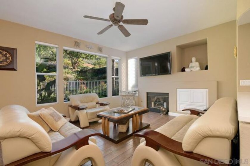 THIS IS THE ONE YOU’VE BEEN WAITING FOR! Pride of ownership shines throughout this upgraded townhome located in the highly sought after gated community of Bernardo Vista Del Lago. Close to Poway Unified schools, Lake Hodges hiking and nature trails, parks, easy on-off interstate access, shopping & entertainment! Home has the largest corner lot in the neighborhood with a privately fenced yard, serene landscaping, zero-maintenance turf, landscape lighting & automated irrigation system. Upgraded features throughout include high ceilings, plantation shutters, beautiful woodgrain ceramic tile, trim and carpeting, neutral colors, ceiling fans, large picturesque windows. The spacious master bedroom ensuite includes a large walk-in closet, tiled shower with frameless glass door and Grohe fixtures. The his & her vanity offers dual sinks and ample storage. The second bedroom is equally spacious with an ensuite bathroom along with a large closet with ample built-in storage. The kitchen includes upgraded wood cabinetry, granite countertops and backsplash, stainless steel appliances and plenty of storage. The private 2-car garage includes built-in cabinets for additional storage. Newly tiled roof and exterior paint.   Just move right-in to this turnkey home and start enjoying the amazing resort-like features of a Gated community with 24/7 Security, Community Center with two large pools, two spas, newly updated gym, tennis and basketball courts, Clubhouse, BBQ areas, kids playgrounds, private parks, walking paths, beautifully maintained landscaping and a low HOA Stackable washer and dryer will remain. Gas fireplace in living room. Complex has 2 pools, one a heated lap, 2 spas, 4 lighted tennis courts, exercise room, banquet facilities and more! Low HOA and NO Mello Roos! Complex Features: ,,,,,,,,, Equipment: Dryer,Garage Door Opener, Range/Oven, Washer Other Fees: 0 Sewer: Sewer Connected Topography: GSL