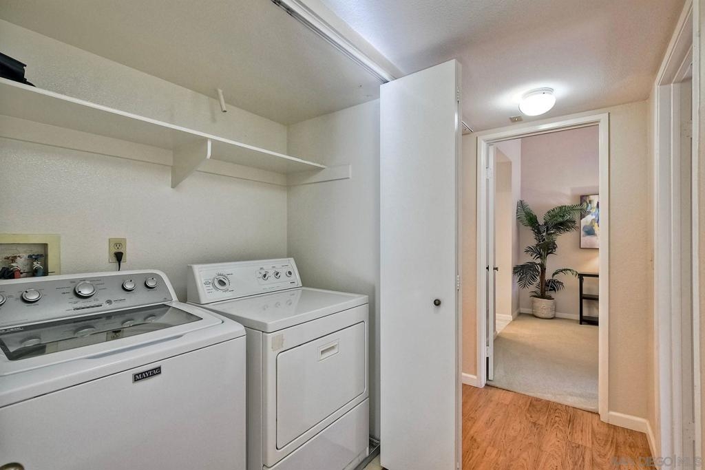 This beautiful upstairs unit sits far in the back with hillside views and privacy! This fantastic 2 bed/2 bath unit has been well maintained and has a great floorplan maximizing the space! Laundry closet, garage, and plenty of parking. The resort amenities include, pool, weight room, playground, courts! Gated community. Poway Schools. Close to shopping, trails, and freeways.