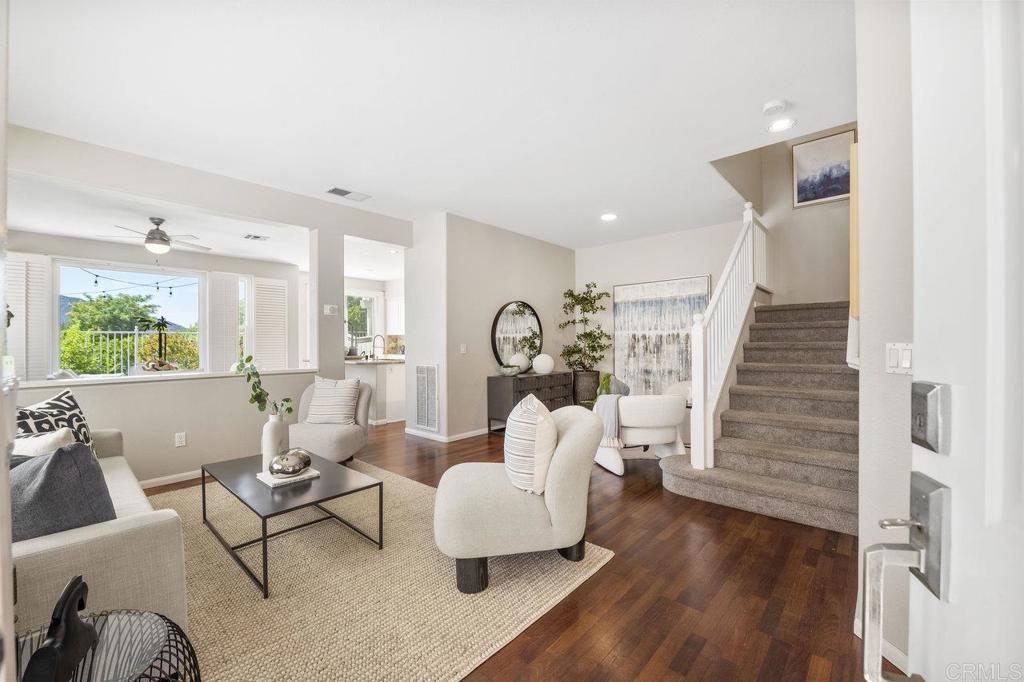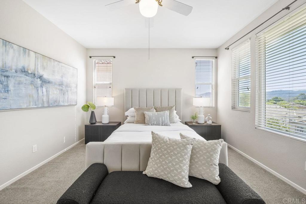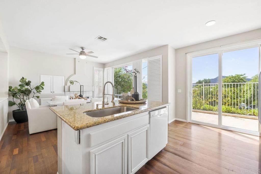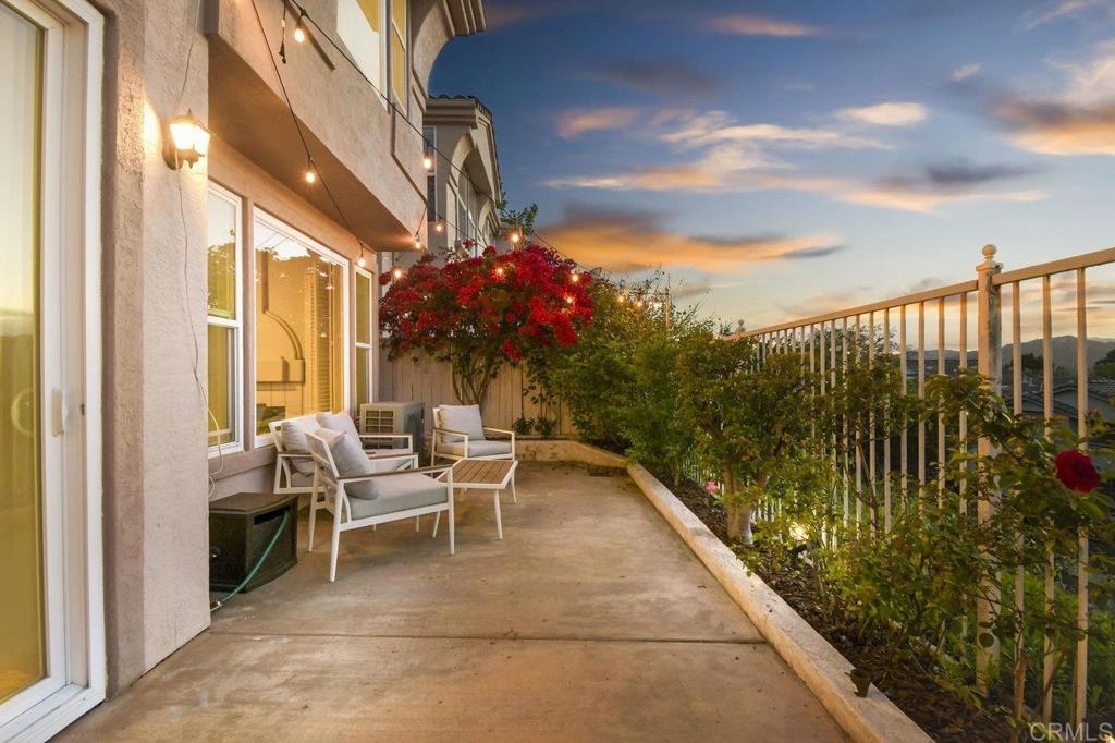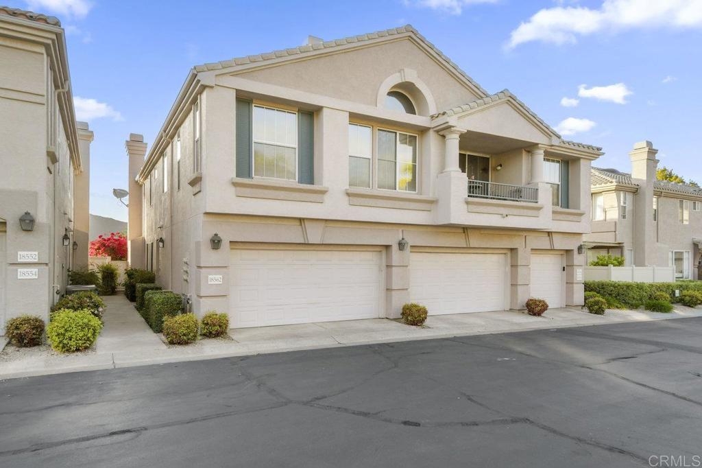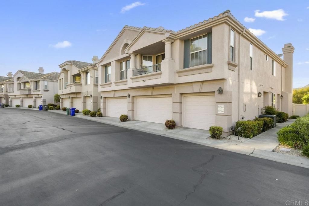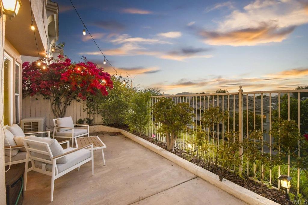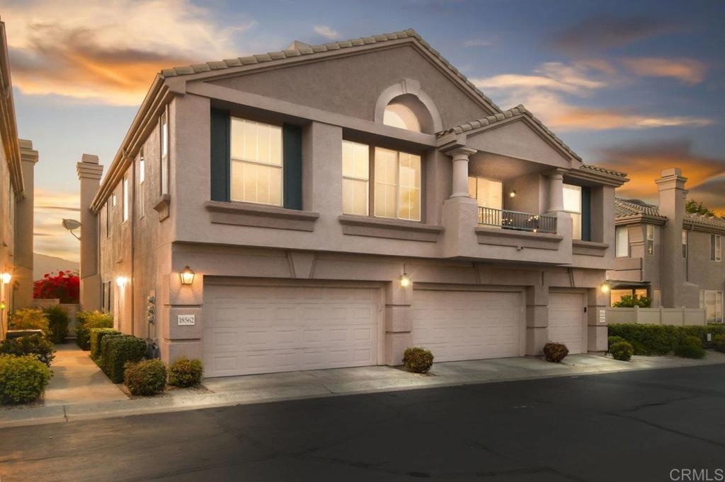 Live the resort lifestyle you've been dreaming of in this upgraded 3 bedroom (plus loft) 2.5 bath condo! Step into a light-filled first floor where the living, dining, and kitchen areas flow seamlessly with lots of natural light, and engineered-wood flooring. Upstairs you will find 3 bedrooms, 2 baths, and a loft. The primary suite is a peaceful retreat with generous space, a walk-in closet, and an en-suite bathroom with a newly tiled shower. Imagine a sun-drenched loft, thanks to the gorgeous sky-light, the ideal space to set up a home office or hunker down with a cozy book. Walk outside onto the expansive back patio and be captivated by breathtaking sunset views painting the mountain backdrop. The home features a two car garage plus ample guest parking. Other highlights include newer appliances, HVAC, and water heater. The roof was recently replaced by the HOA. Enjoy the resort-style amenities of the community including pool, spa, pickleball, courts, fully-equipped fitness center, clubhouse, banquet facilities, playground, duck pond, and 24/7 on-site security. Located in the top-rated Poway Unified School District.