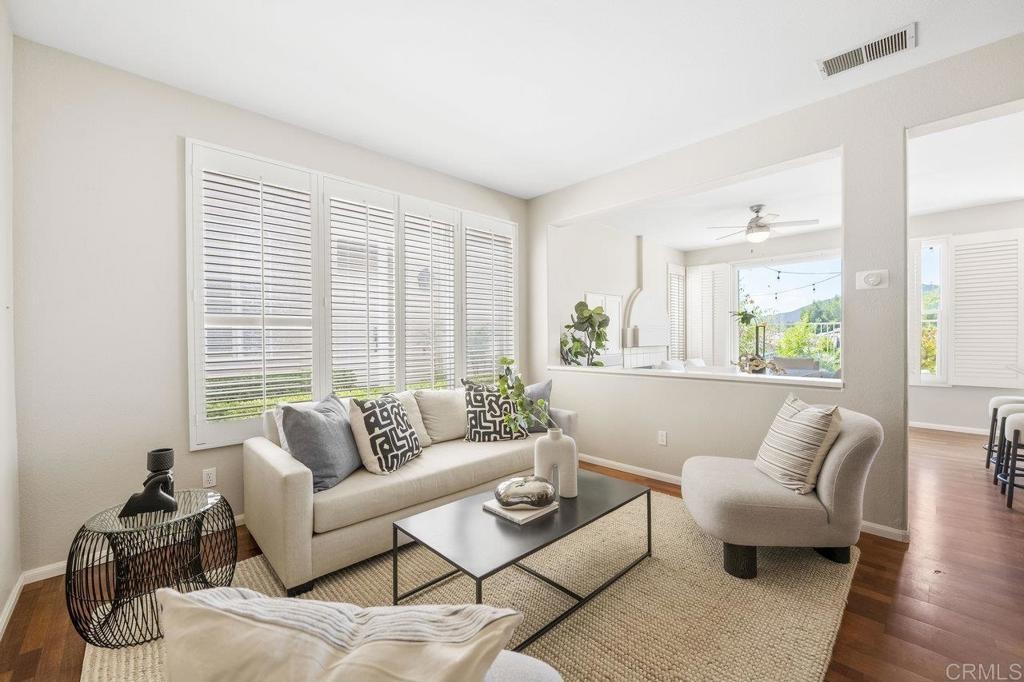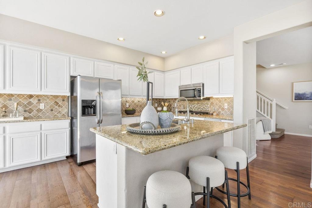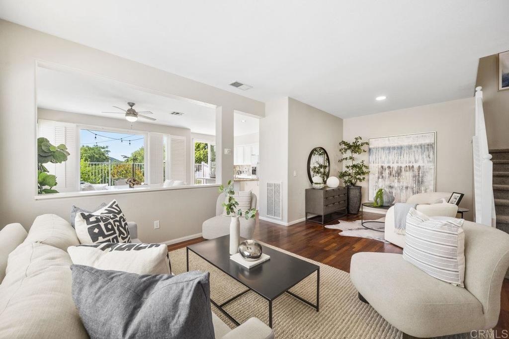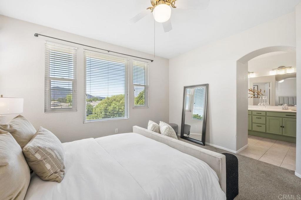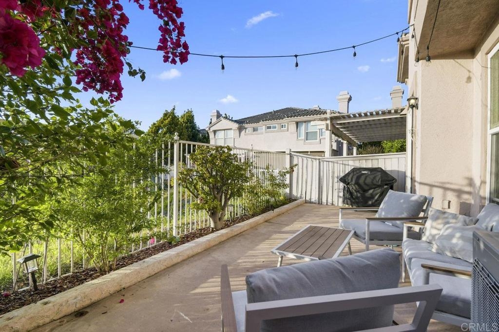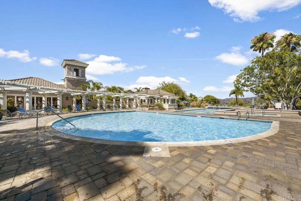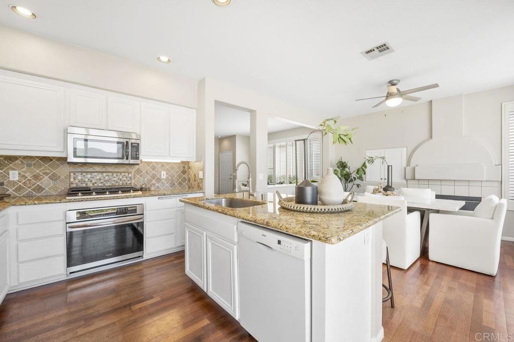 Live the resort lifestyle you've been dreaming of in this upgraded 3 bedroom (plus loft) 2.5 bath condo! Step into a light-filled first floor where the living, dining, and kitchen areas flow seamlessly with lots of natural light, and engineered-wood flooring. Upstairs you will find 3 bedrooms, 2 baths, and a loft. The primary suite is a peaceful retreat with generous space, a walk-in closet, and an en-suite bathroom with a newly tiled shower. Imagine a sun-drenched loft, thanks to the gorgeous sky-light, the ideal space to set up a home office or hunker down with a cozy book. Walk outside onto the expansive back patio and be captivated by breathtaking sunset views painting the mountain backdrop. The home features a two car garage plus ample guest parking. Other highlights include newer appliances, HVAC, and water heater. The roof was recently replaced by the HOA. Enjoy the resort-style amenities of the community including pool, spa, pickleball, courts, fully-equipped fitness center, clubhouse, banquet facilities, playground, duck pond, and 24/7 on-site security. Located in the top-rated Poway Unified School District.