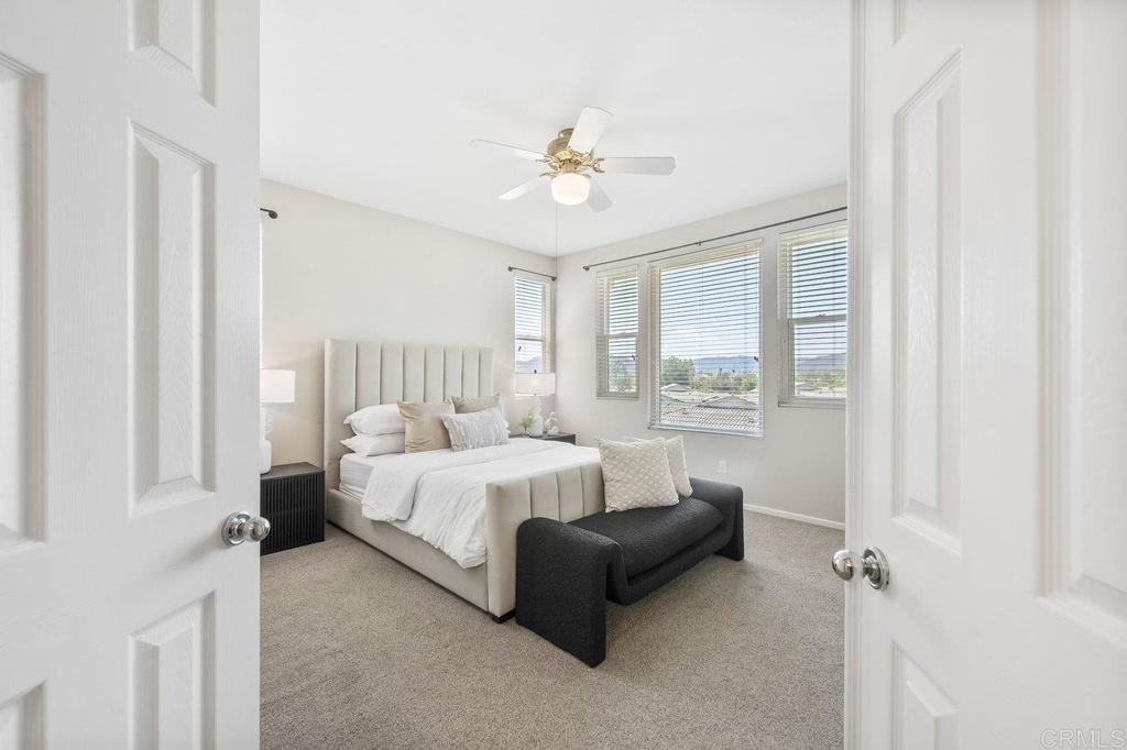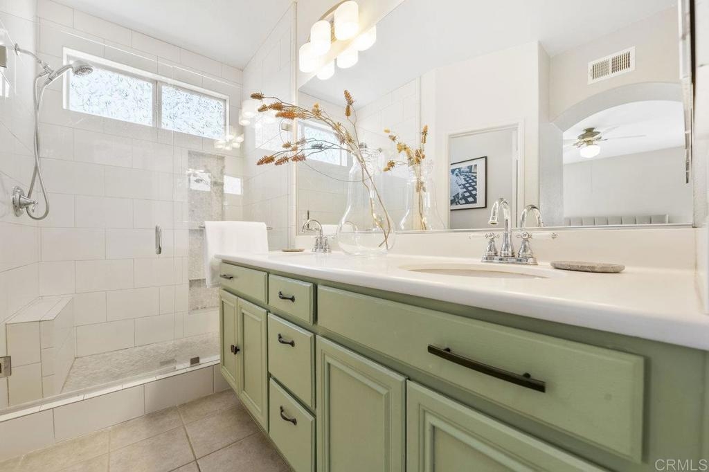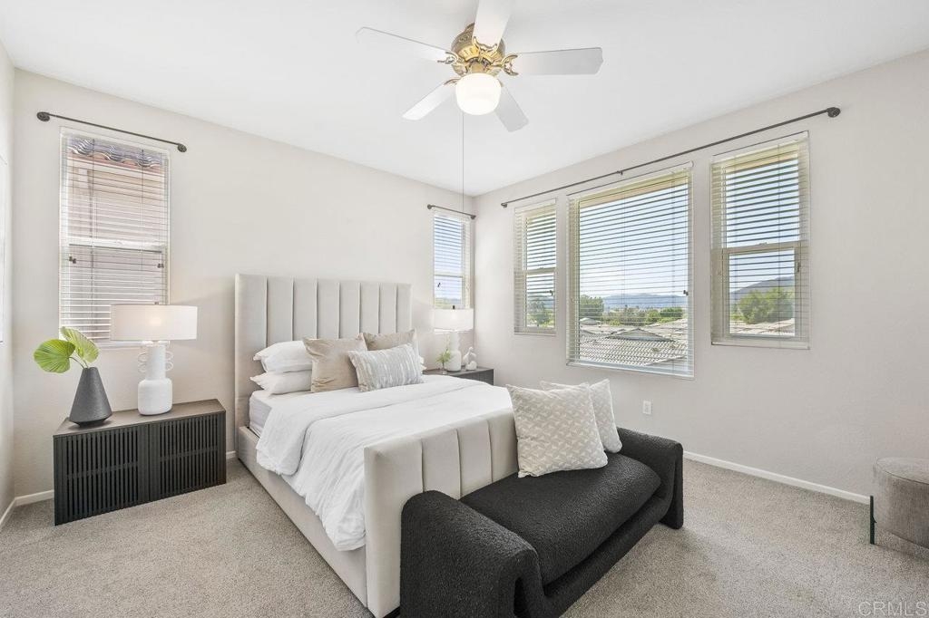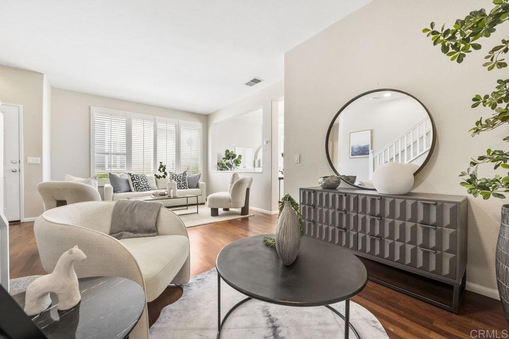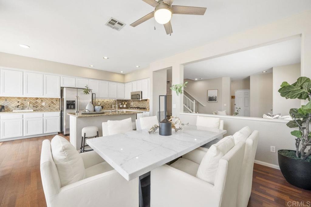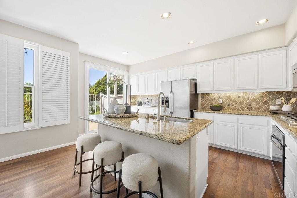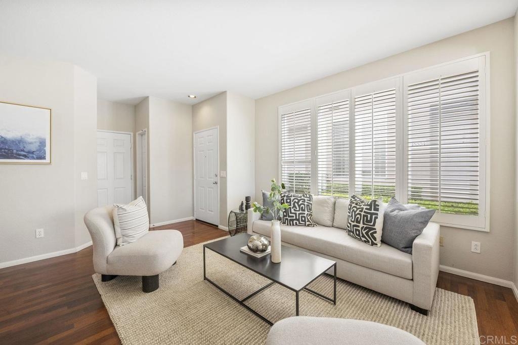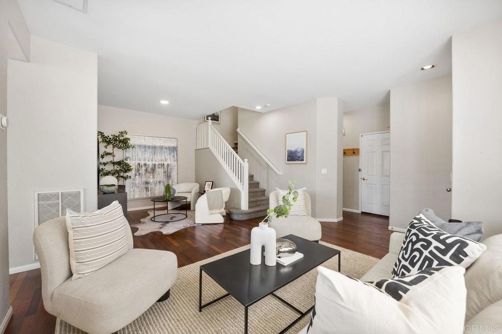 Live the resort lifestyle you've been dreaming of in this upgraded 3 bedroom (plus loft) 2.5 bath condo! Step into a light-filled first floor where the living, dining, and kitchen areas flow seamlessly with lots of natural light, and engineered-wood flooring. Upstairs you will find 3 bedrooms, 2 baths, and a loft. The primary suite is a peaceful retreat with generous space, a walk-in closet, and an en-suite bathroom with a newly tiled shower. Imagine a sun-drenched loft, thanks to the gorgeous sky-light, the ideal space to set up a home office or hunker down with a cozy book. Walk outside onto the expansive back patio and be captivated by breathtaking sunset views painting the mountain backdrop. The home features a two car garage plus ample guest parking. Other highlights include newer appliances, HVAC, and water heater. The roof was recently replaced by the HOA. Enjoy the resort-style amenities of the community including pool, spa, pickleball, courts, fully-equipped fitness center, clubhouse, banquet facilities, playground, duck pond, and 24/7 on-site security. Located in the top-rated Poway Unified School District.