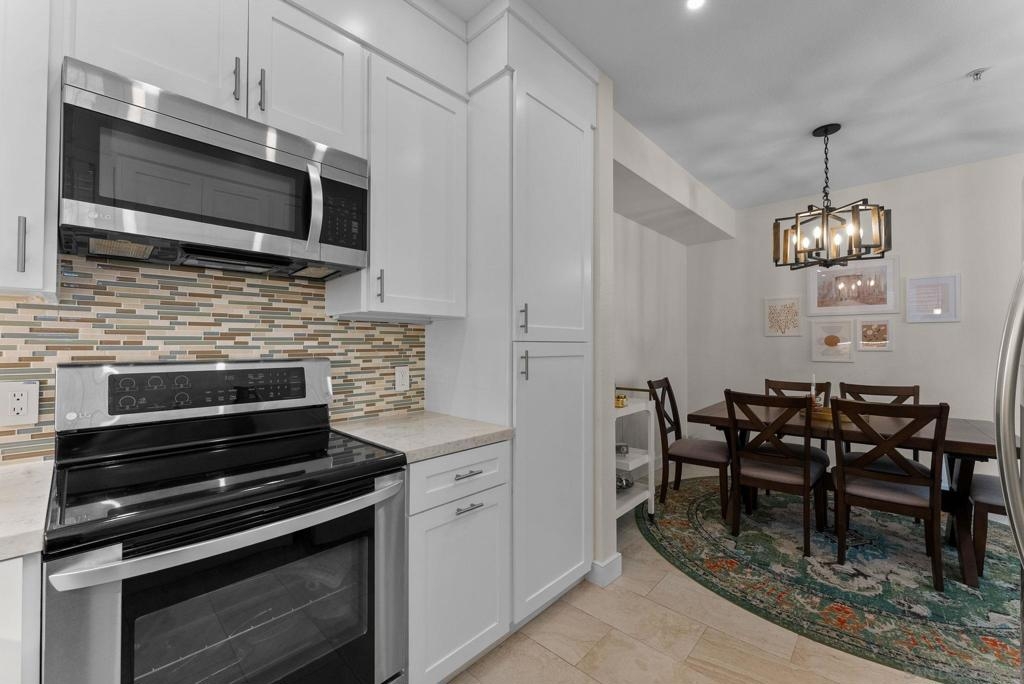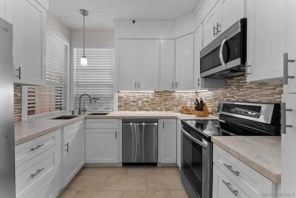 Conventional Financing available. Fully remodeled Morada ground-floor 1BD/1BA condo with modern finishes throughout. Enjoy tile flooring, sleek bathroom, stainless steel appliances, in-unit laundry, and a spacious private patio. The open layout offers great natural light and a cozy fireplace in the living room. Located in the gated Vista Del Lago community with easy access to parking. Ideal for first-time buyers or downsizers seeking stylish, low-maintenance living in a quiet, resort-style setting.