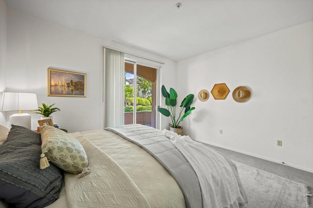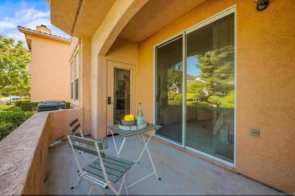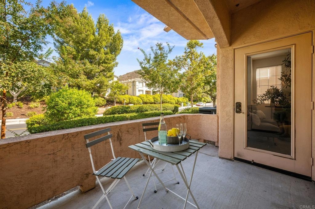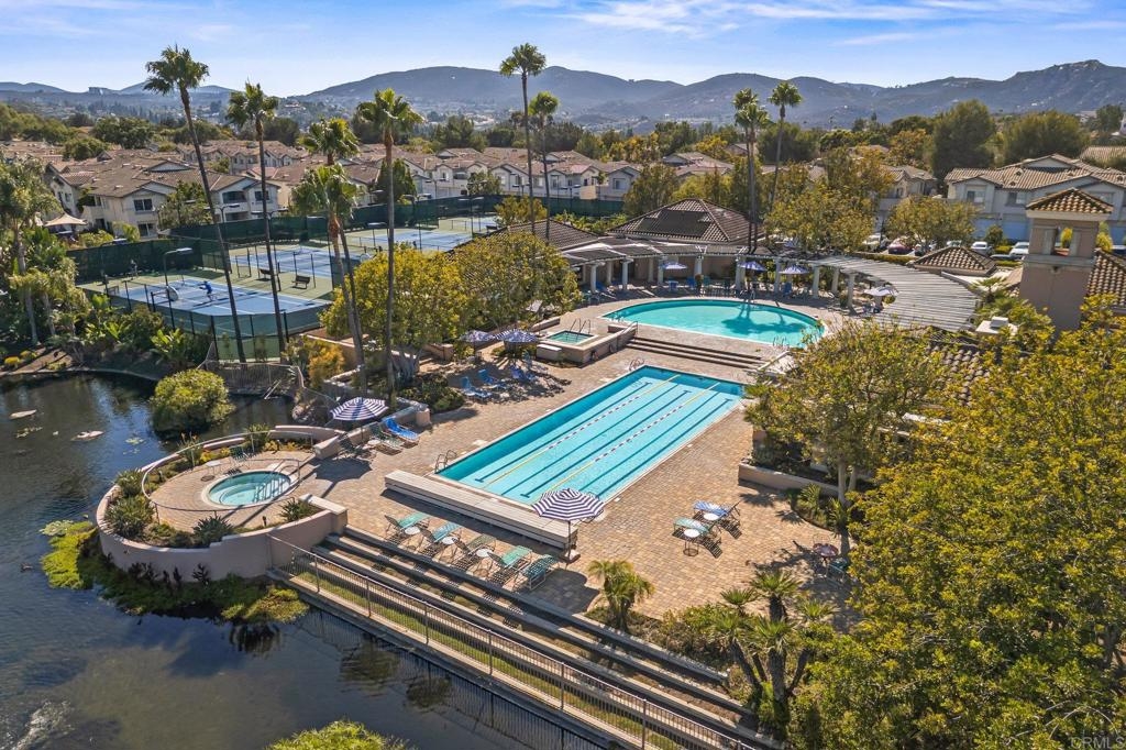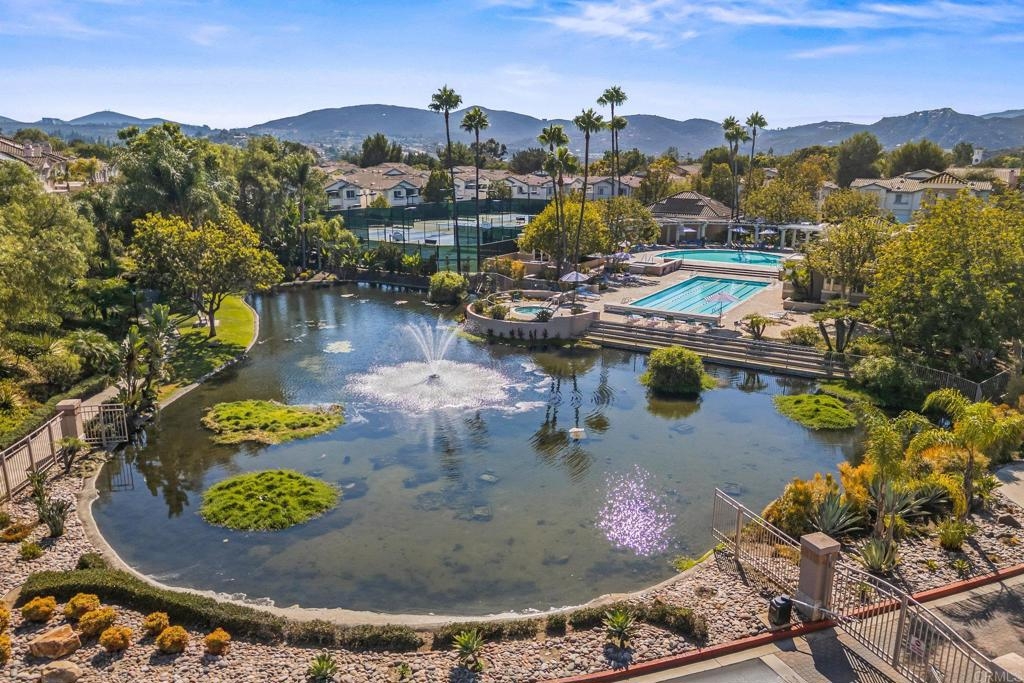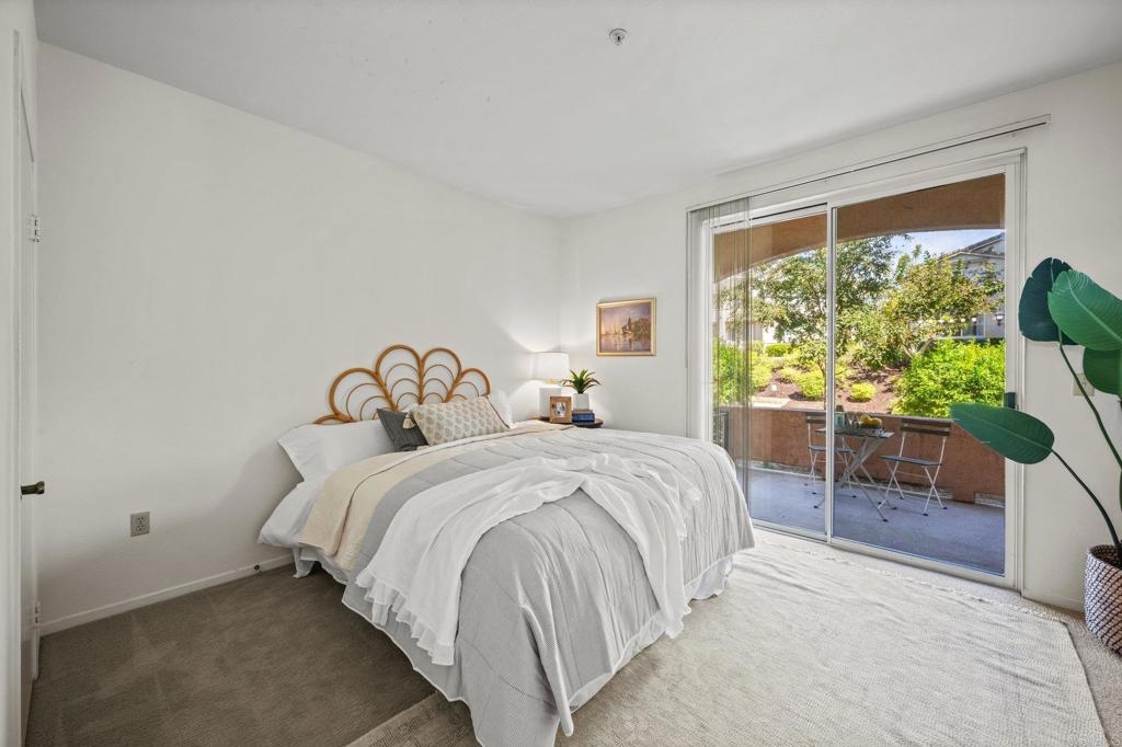 Welcome to Bernardo Vista Del Lago featuring resort-like amenities and secure gated entry. Relax at the pool and spa, exercise at the spacious gym or pickleball/tennis courts and entertain in the game room, clubhouse and extensive outdoor patio. This light and bright corner unit is tucked away from freeway noise in the center of the community with one bedroom, one bathroom, in-unit laundry and A/C. Enter your lush quiet patio overlooking green space from the bedroom or living room French door. Ample patio closet for extra storage. Newer carpet and paint, stainless appliances and generous floorplan. Electric car chargers in the nearby parking area. HOA covers water, trash, sewer, building insurance, maintenance and amenities.